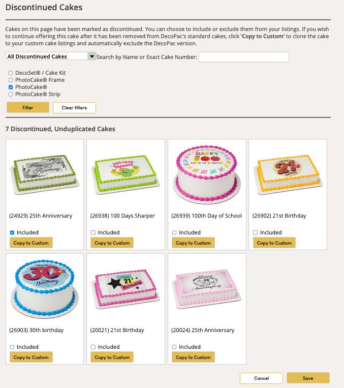 C. New Cake Inclusion – Turn this option on if you want to automatically include all of DecoPac’s new cake designs to your CelebrationIQ page.