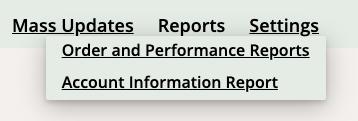 After logging in as a manger, you will see the Account Information Report page. This page allows you to view the Cakes.com and CelebrationIQ Ordering Status for each location. Use the dropdowns to easily sort locations.. When logged in as a Manager, you are also able to view reports for all locations. Please contact your DecoPac Sales Representative for more details on how to access this option