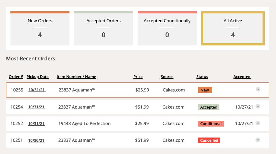 • Accepted: This means you have accepted a customer’s order and will fulfill the order by the pickup date.