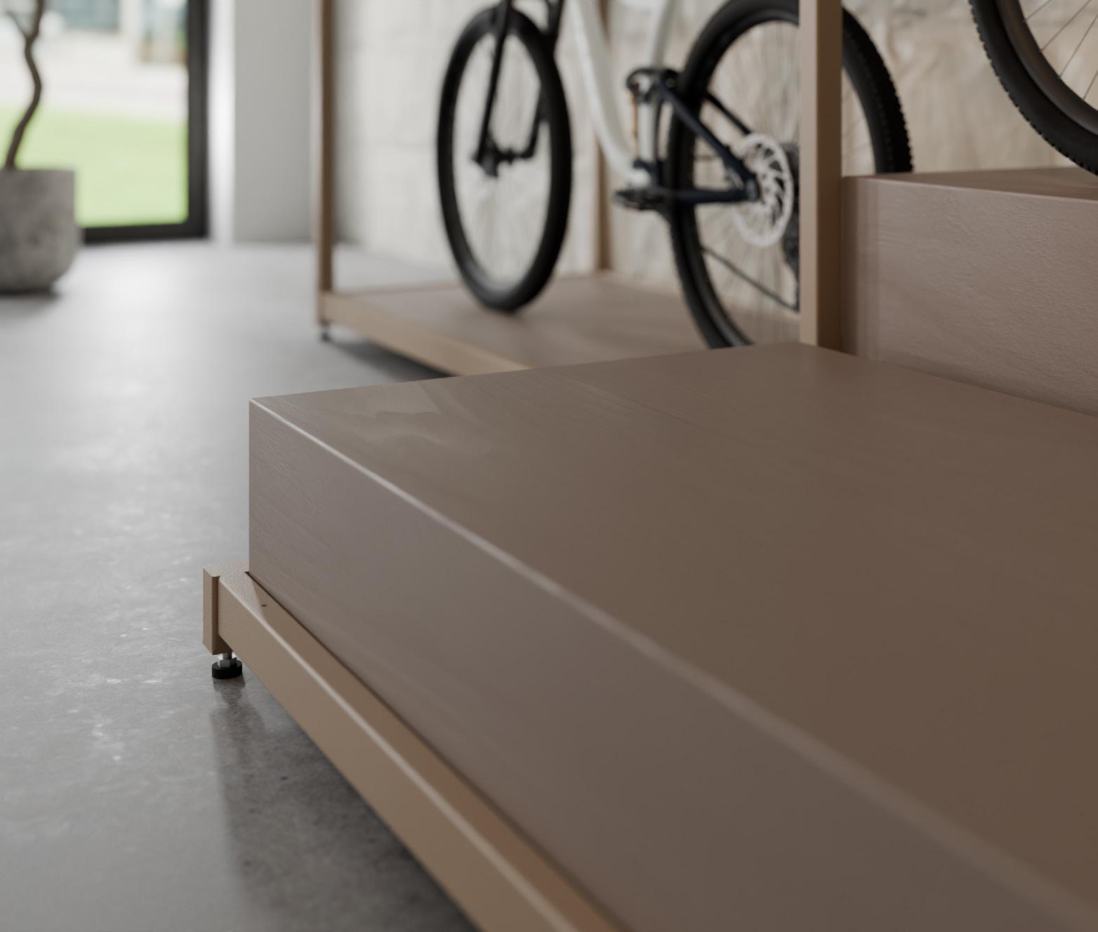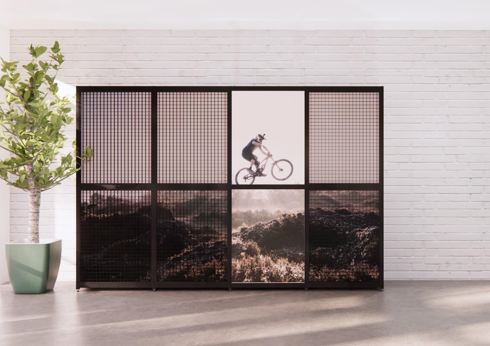 Ausgestattet mit einer Vielzahl maßgeschneiderter Haken eignet sich das Grid-Wandsystem ideal für die stilvolle Präsentation verschiedenster fahrradbezogener Produkte – wie Fahrradbekleidung, Helme, Brillen und Radschuhe.