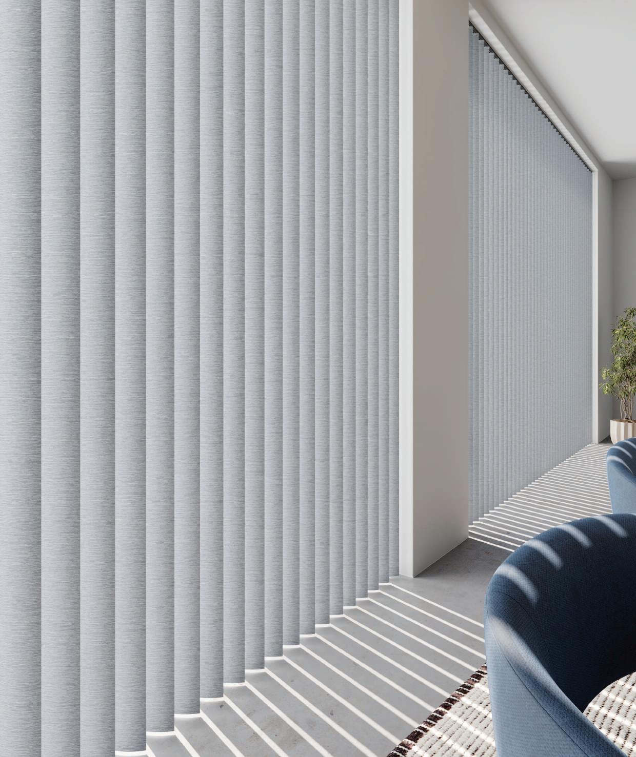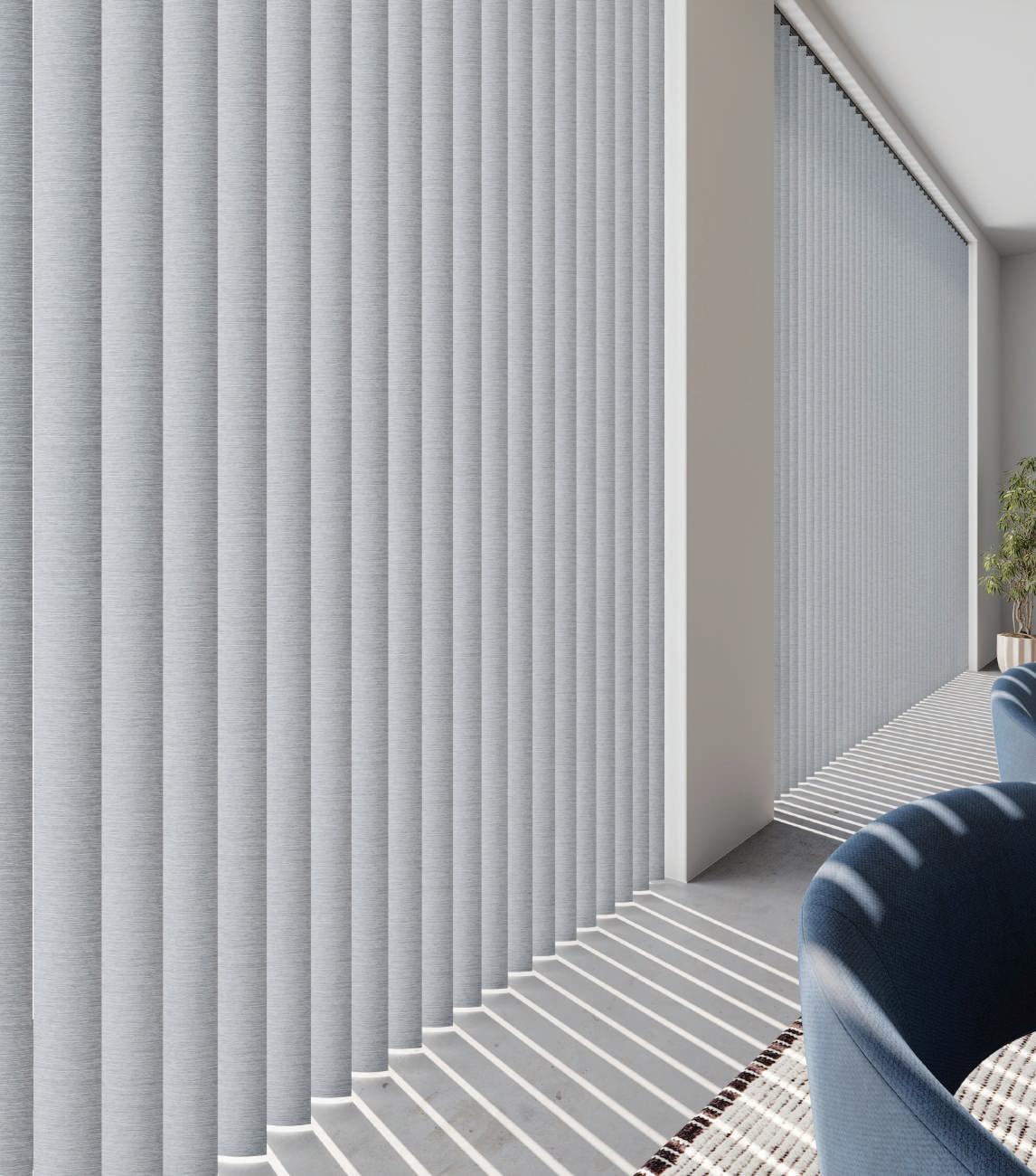 VERTICAL blinds are one of the most versatile window treatments, offering a gentle BALANCE between light control and privacy. Choice has been central to the evolution of The Fabric BoxTM DURASHADE® collection.