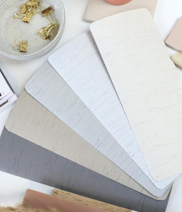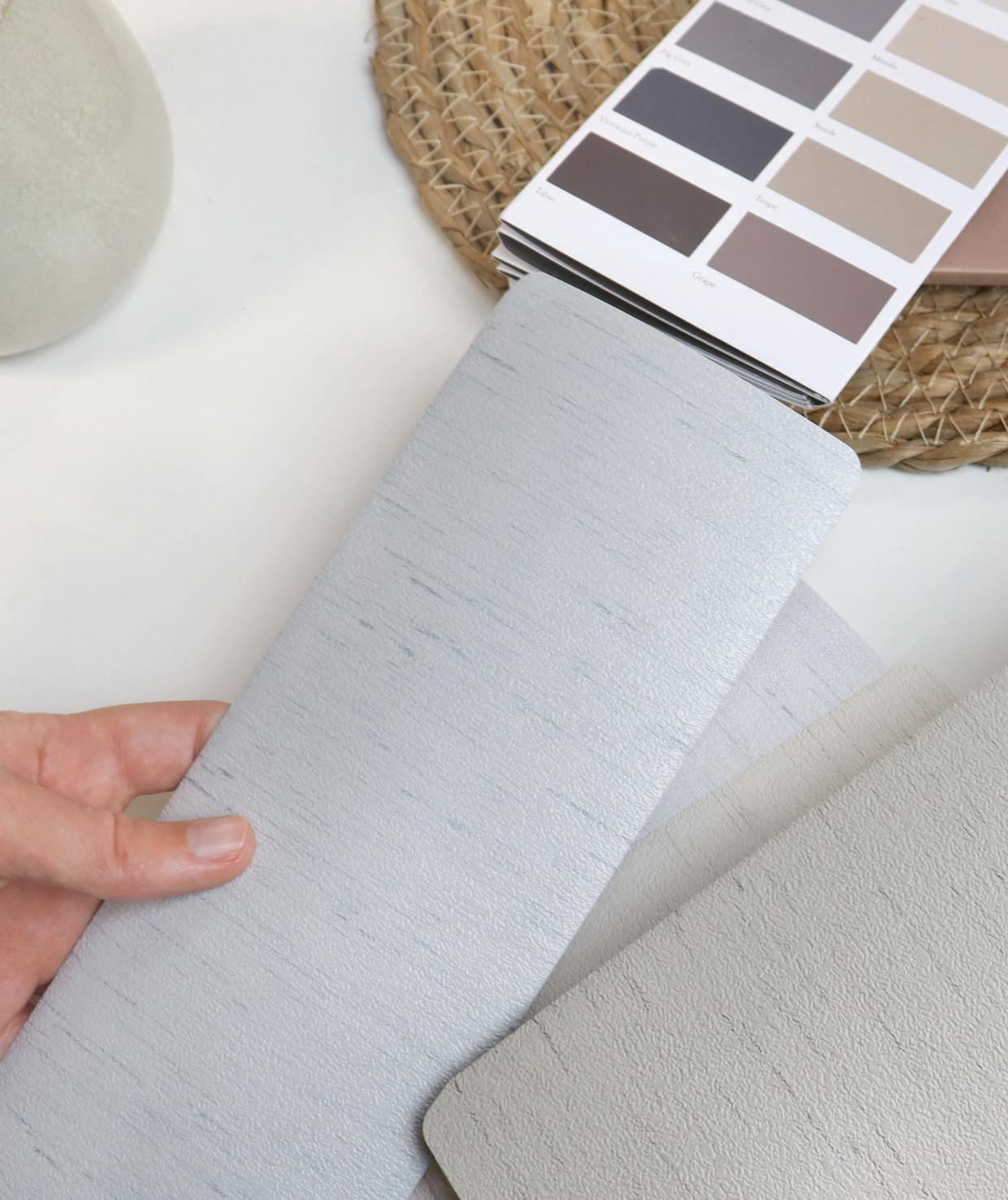 surfaces, natural weaves and subtle textures commonly found in contemporary kitchens and bathrooms. This collection is perfectly suited to the functional demands of modern homes.