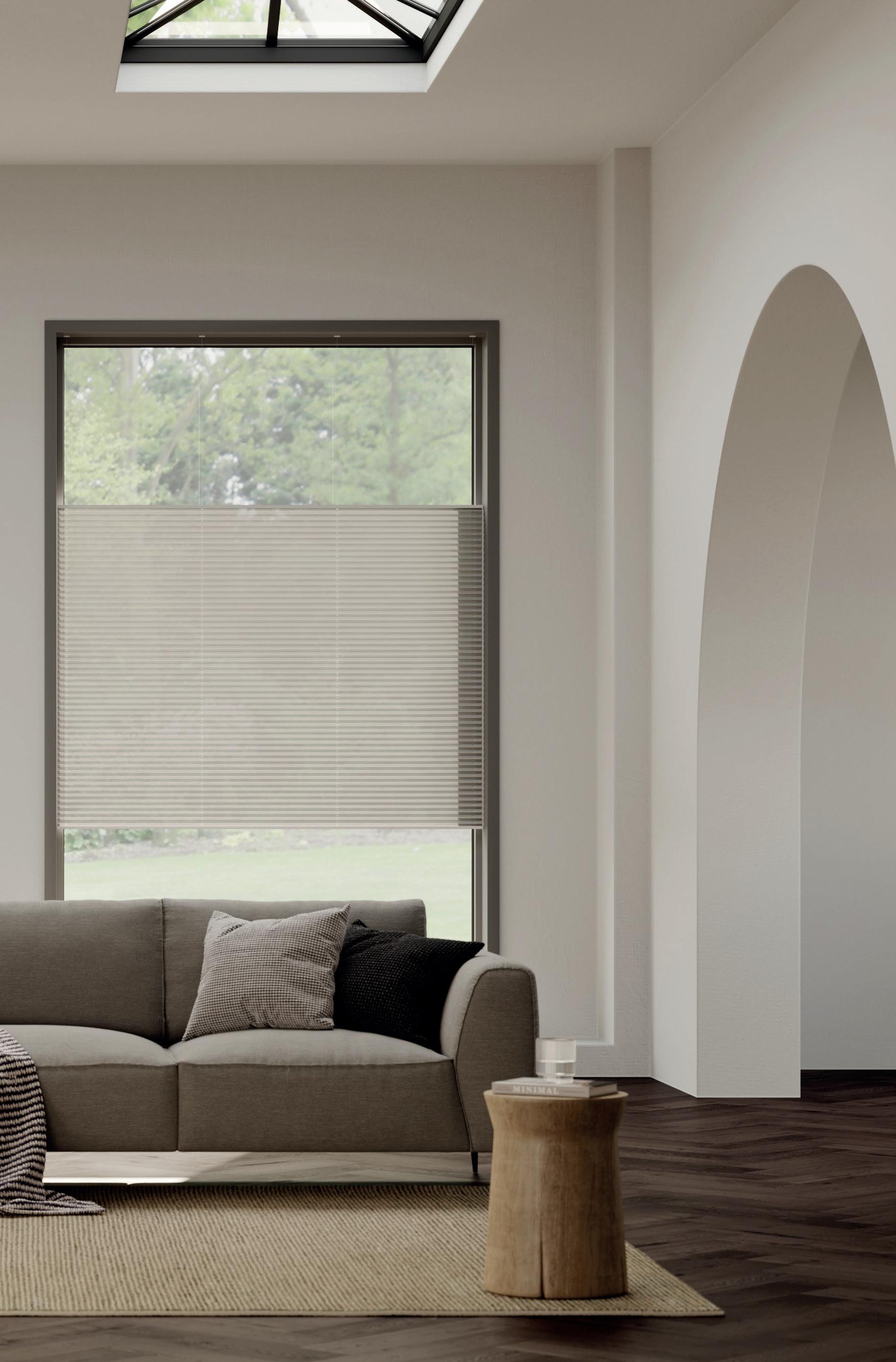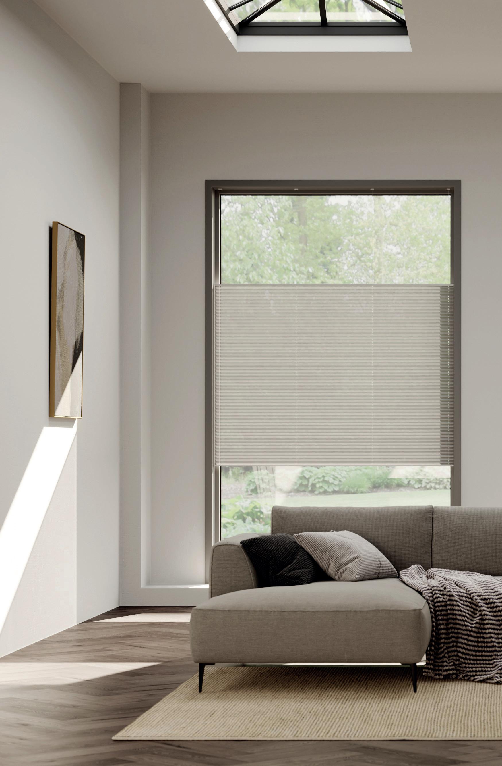 Developed to keep the fabric in place, the tensioned option is the perfect solution for tilt and turn windows and bi-fold doors. Available as top-down bottom-up operation the V08 system offers perfect light control and privacy.