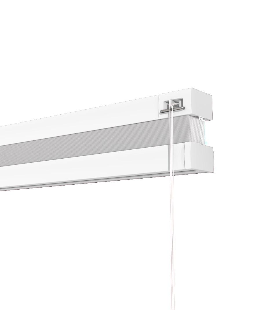 System V01 presents a simple bottom-up cord control. The fabric hangs from the slimline headrail profile and the blind is operated by locking the cord in the desired position.