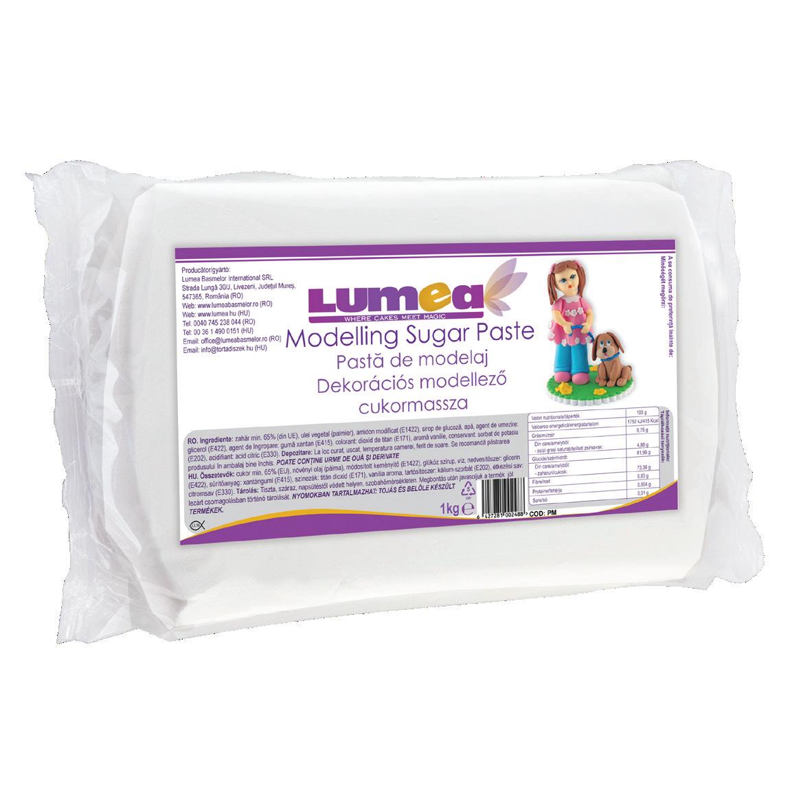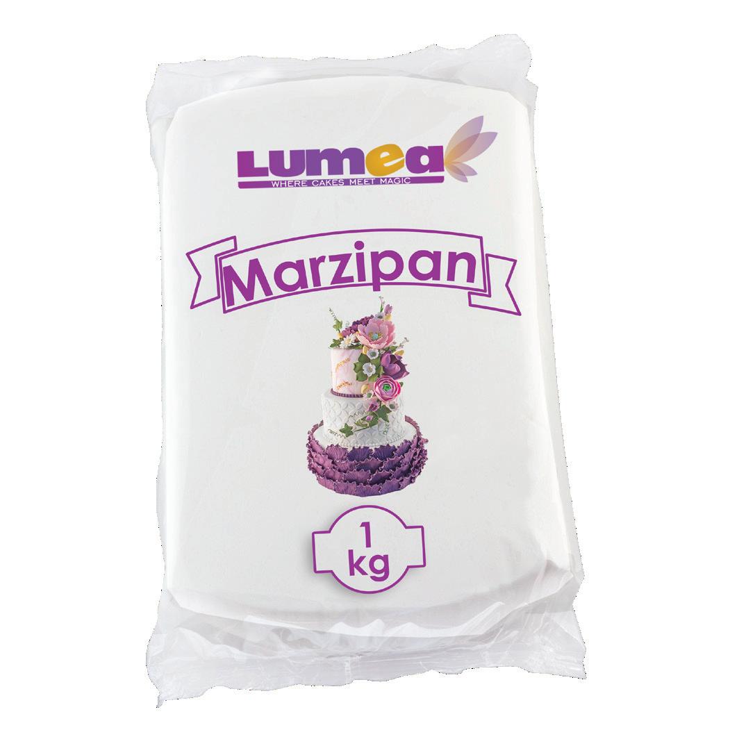 Lumea marzipan flavoured sugar paste, is easy to process, because it is an elastic sugar paste and does not crack during work. It kneads easily, and has a pleasant marzipan taste. It is ideal for covering cakes and more. It stretches well and keeps its shape on the cake as needed. Adding a small amount of corn starch you can make the mass firmer, so it will become an ideal material for figurines.