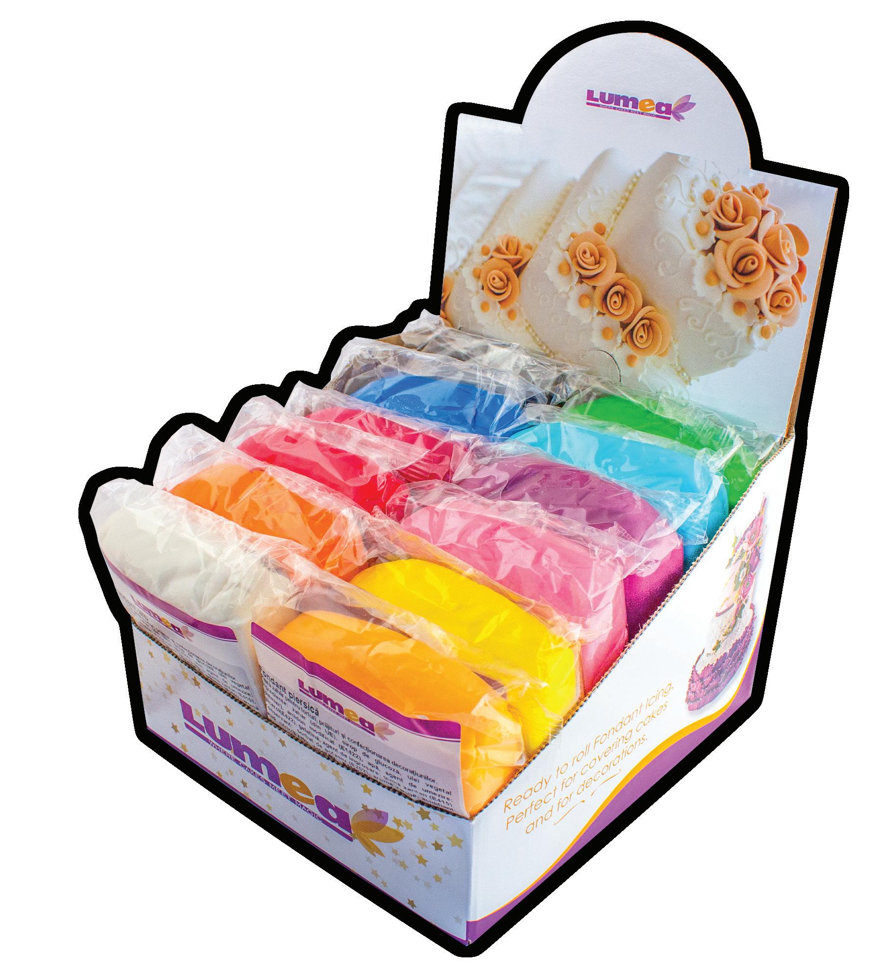 It stretches well and keeps its shape on the cake as needed. Adding a small amount of corn starch you can make the mass firmer, so it will become an ideal material for figurines. You can choose from 8 intense and vibrant colours with neon effect for your decorations in different packaging sizes.