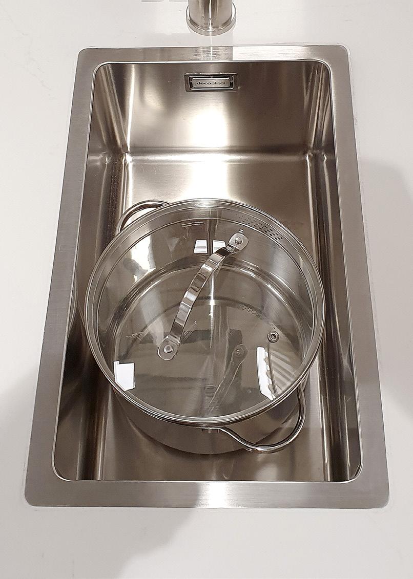 3 Ställ aldrig en varm kastrull direkt på diskbänken – använd alltid ett underlägg