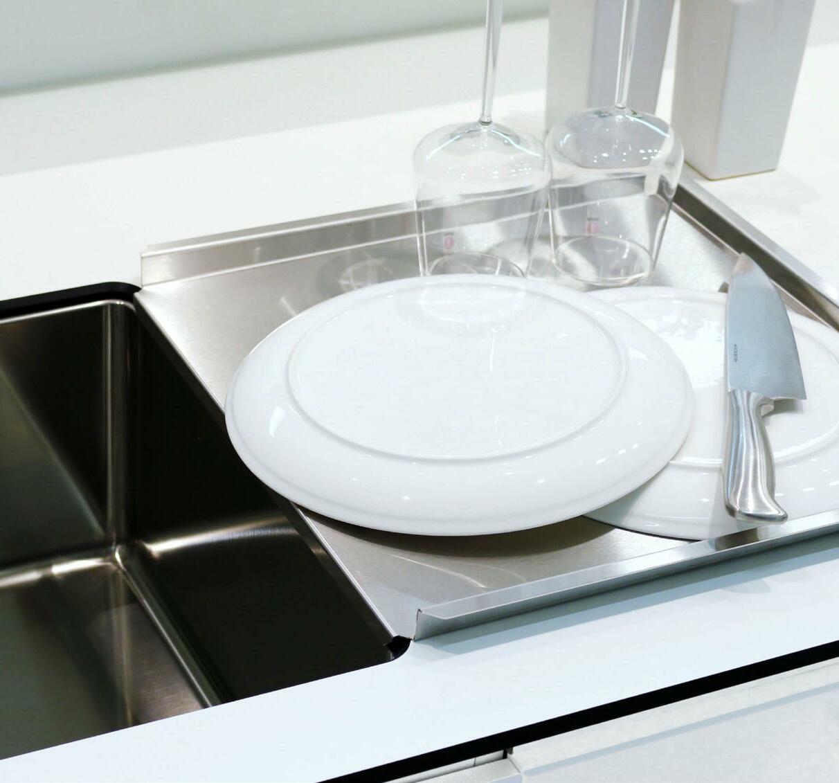 3 Har man en bänkskiva av trä kan det vara praktiskt med en diskbänk med avställningsyta. Det gör att man alltid har en yta att ställa disken på, utan att skada bänkskivan.
