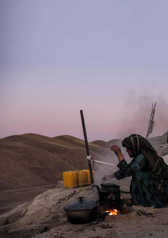 Leila* prepares dinner for her family over a fire on a hill in Badghis province. The family were displaced due to drought.