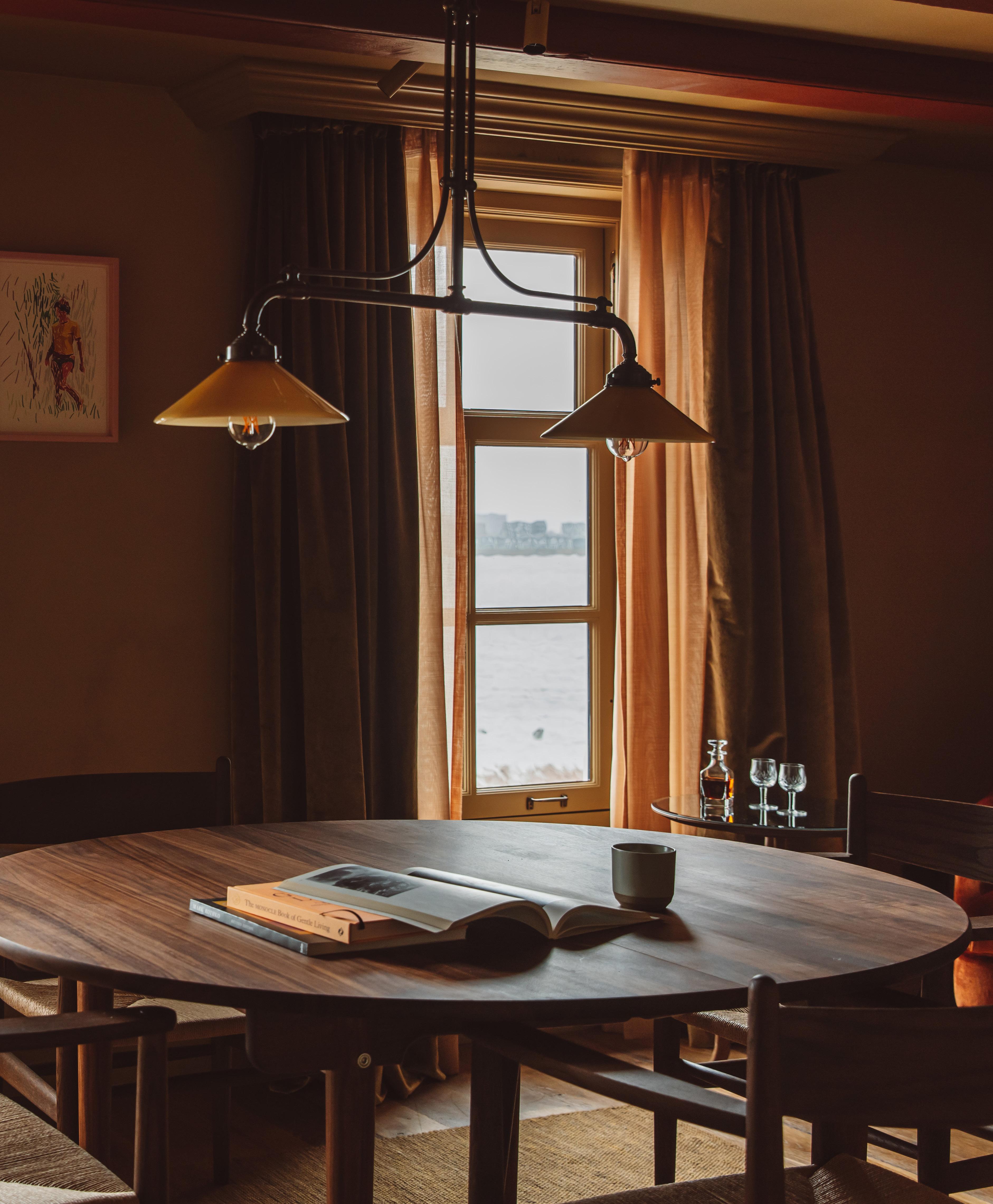 Where De Mark was designed to facilitate liveness and the rooms of De Durgerdam to provide respite and a place to retreat, the drawing room combines best of both worlds. Here guests can retreat to lowest part of the historical building to relax while hearing the buzz in the distance of what’s happening upstairs. “The eye has to travel” and travel it can with the carefully curated art and books that can be found in the lush drawing room of De Durgerdam. We encourage guests to make themselves at home and enjoy the ease of being able to take a nice glass of something or a bite from the honesty bar.