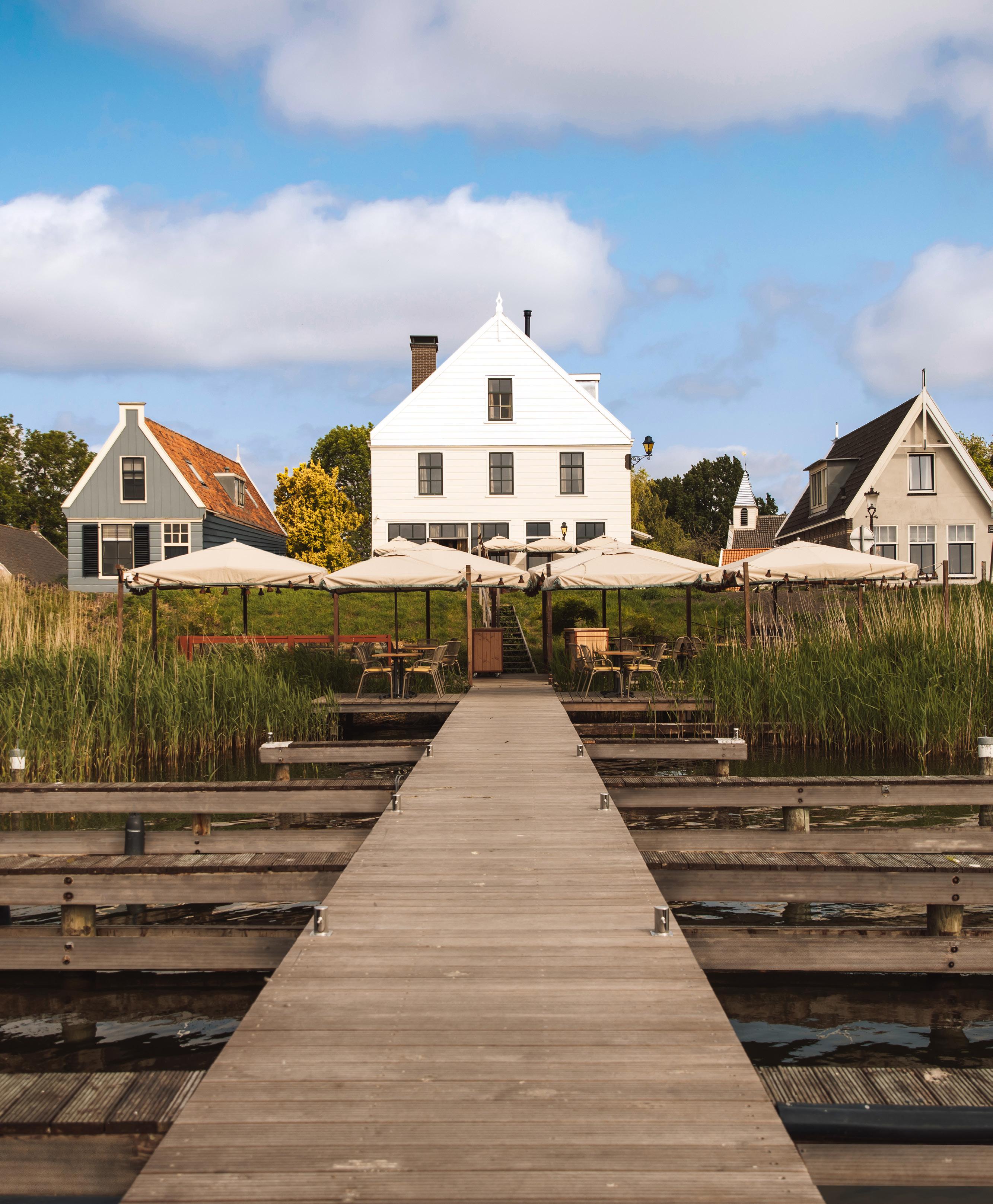 Located in the charming former fishing village of De Durgerdam on the shores of the Ijmeer lake lies our tranquil hideaway. A 17th century inn thoughtfully transformed into a 14-room boutique hotel with lowkey yet the place to be restaurant, De Mark. Navigate the slow lane from Amsterdam: just 15 minutes brings you to our sweet-spot refuge between meadows and shore. An oasis where you can enjoy soulful food from the heart, a swim in the lake, the sun-kissed jetty and fantastic views. Whatever the occasion may be, rest assured you will enjoy your city escape and leave well-fed, well-rested and inspired. Welcome to De Durgerdam.