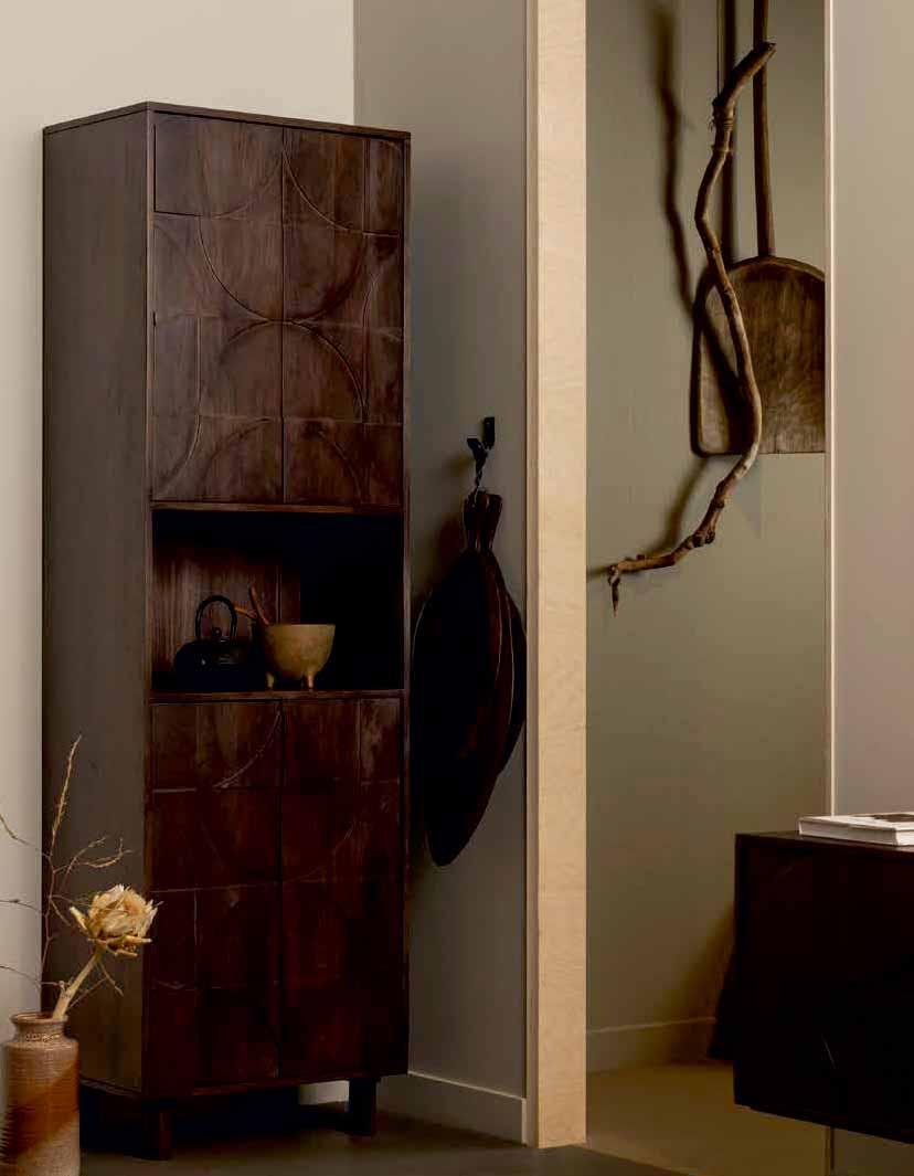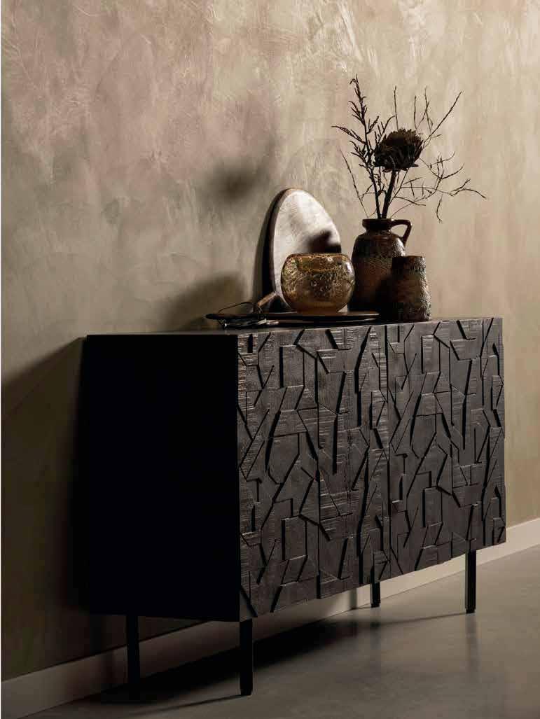 THE WARM WALNUT FINISH OF THE MANGO WOOD PROVIDES THE ATMOSPHERIC APPEARANCE OF THE DRAW CABINET AND SIDEBOARD. THE 3D-PATTERN WITH ORGANIC SHAPES ON THE DOORS GIVE THE ITEMS THE UNIQUE APPEARANCE WHICH MAKE IT A TRUE STATEMENT PIECE.