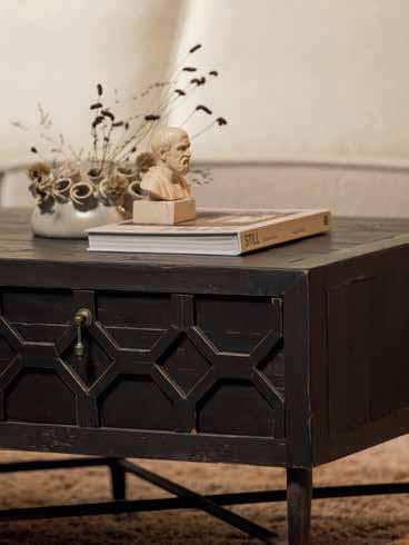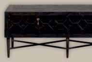 STURDY, BUT ELEGANT. THE BEQUEST CABINET SERIES FEATURES THE DISTINCTIVE DESIGN OF CARVED WOODWORK ON THE DRAWERS AND DOOR FRONTS. THE BEQUEST SERIES IS MADE OF RECYCLED PINE WOOD AND THE ANTIQUE BLACK FINISH GIVES THIS FURNITURE ITS VINTAGE LOOK.