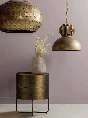 The metal in our collection has various finishes, such as antique brass and powder coating. The antique brass can be finished in a brushed, matt or shiny look. Antique brass is not only luxurious, it also certainly attracts attention.