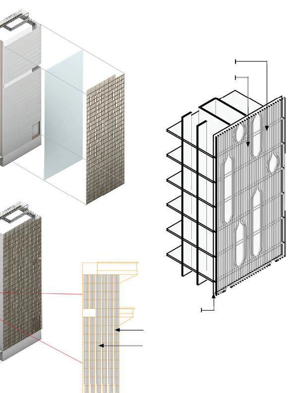 mullion to hold the external skin of the building verical tapered clean glass textured glass