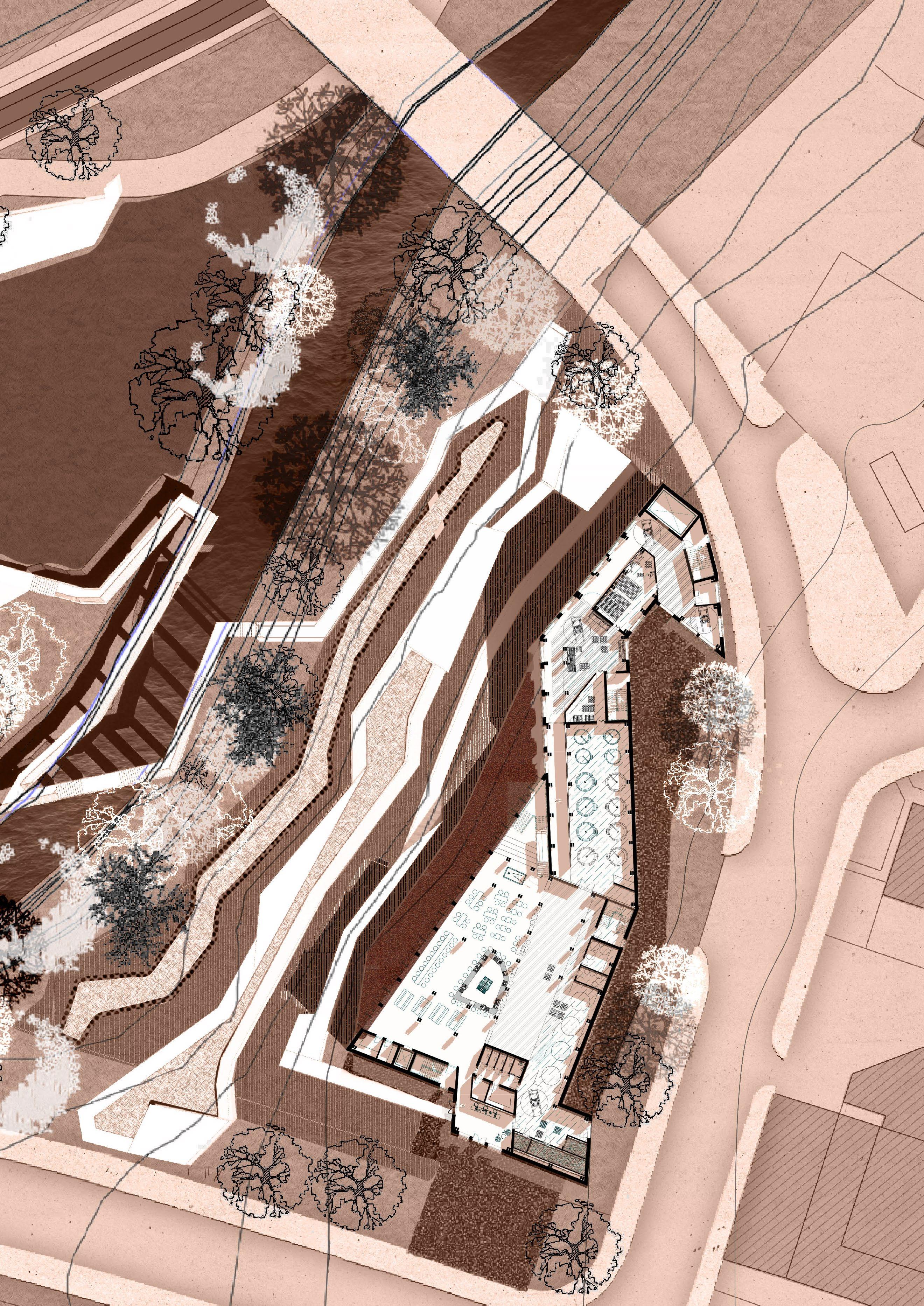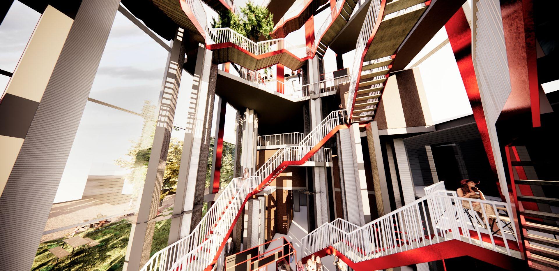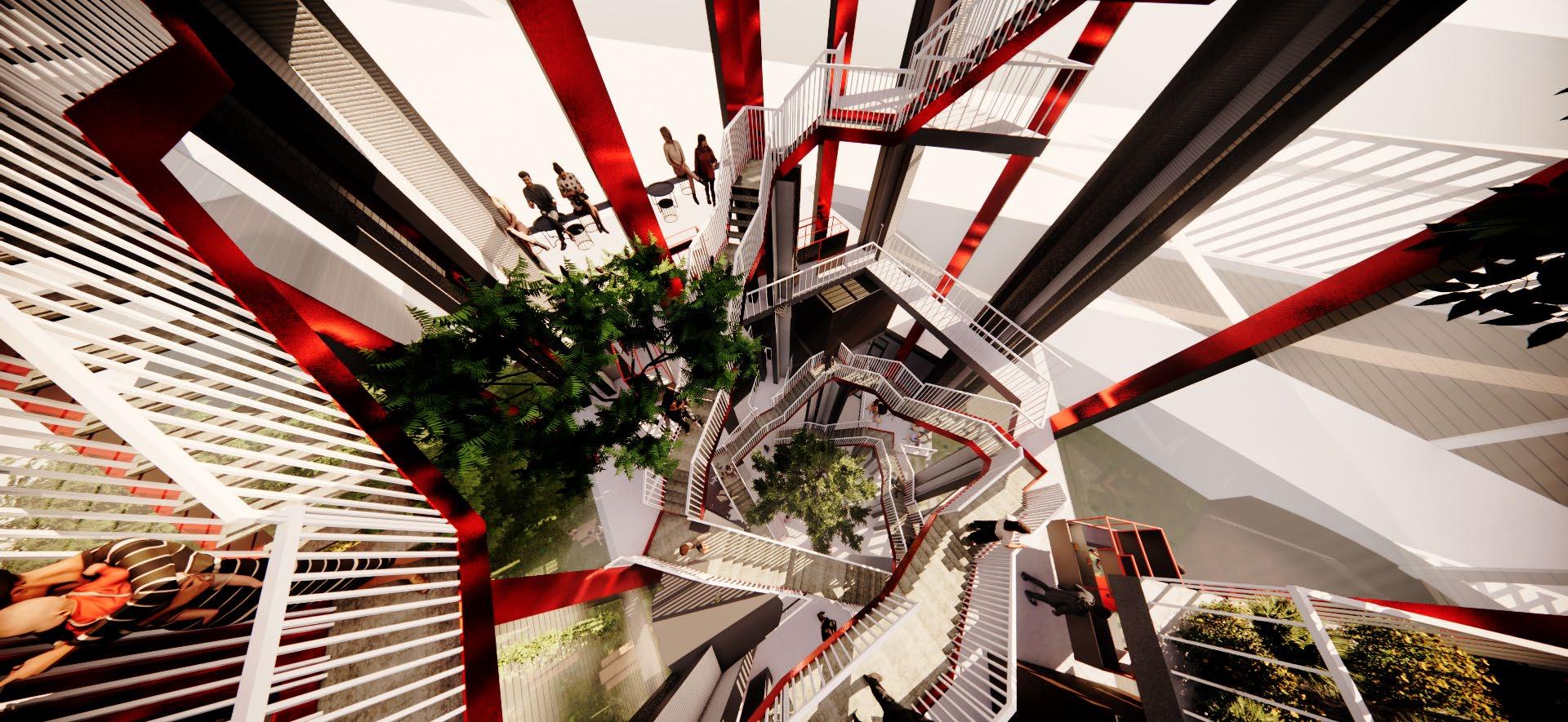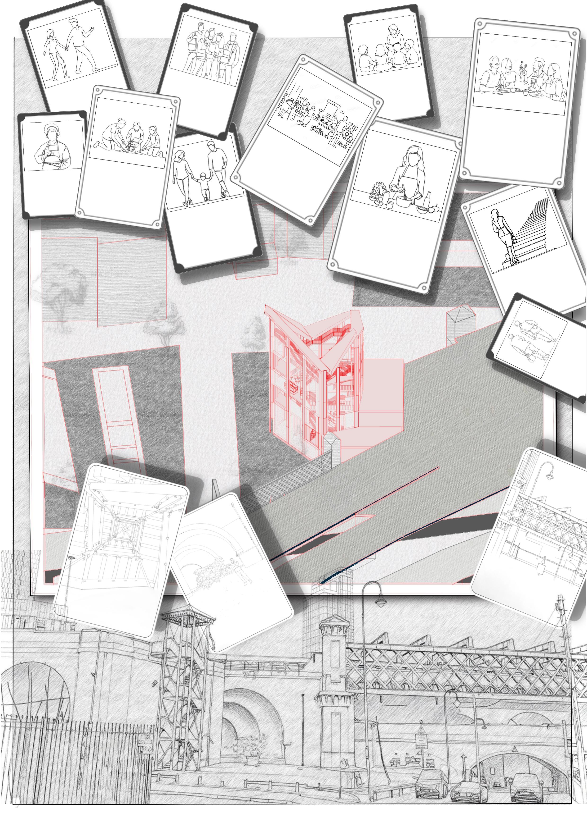 The proposal is situated in a historically charged site in central Manchester, where a well-known red staircase and the surrounding industrial structures form a core part of the area’s identity .These visual cues of the arches, viaducts, and stairs became a mnemonic device to turn the site’s nostalgia into a spatial driver for activating collective memory.