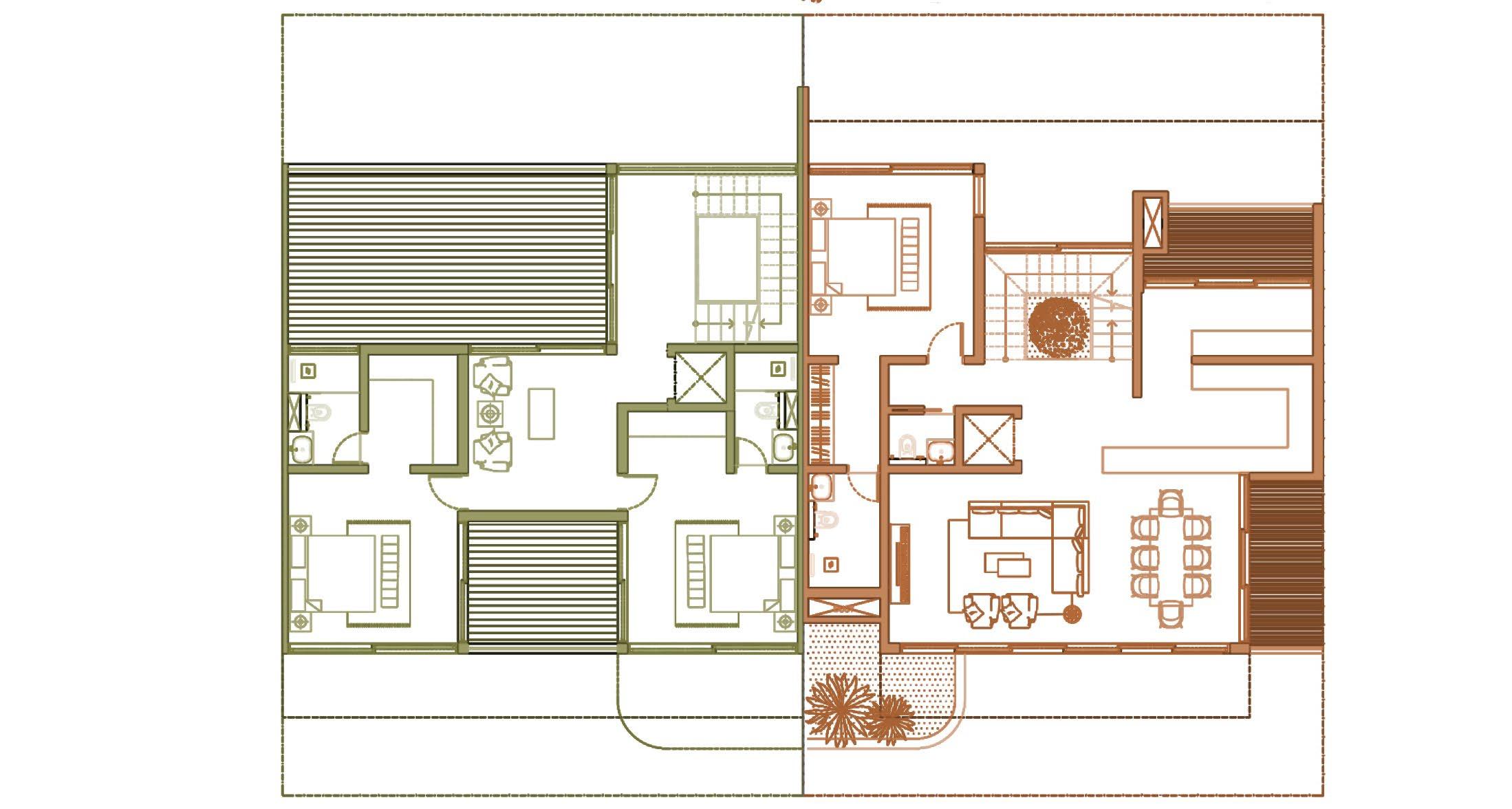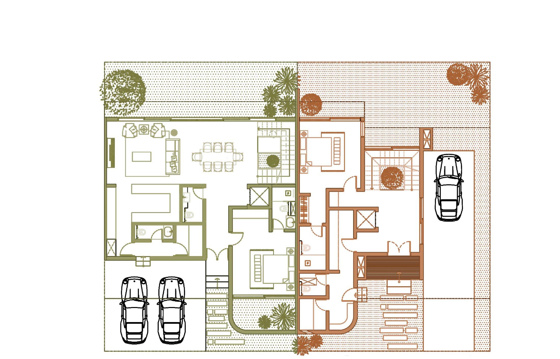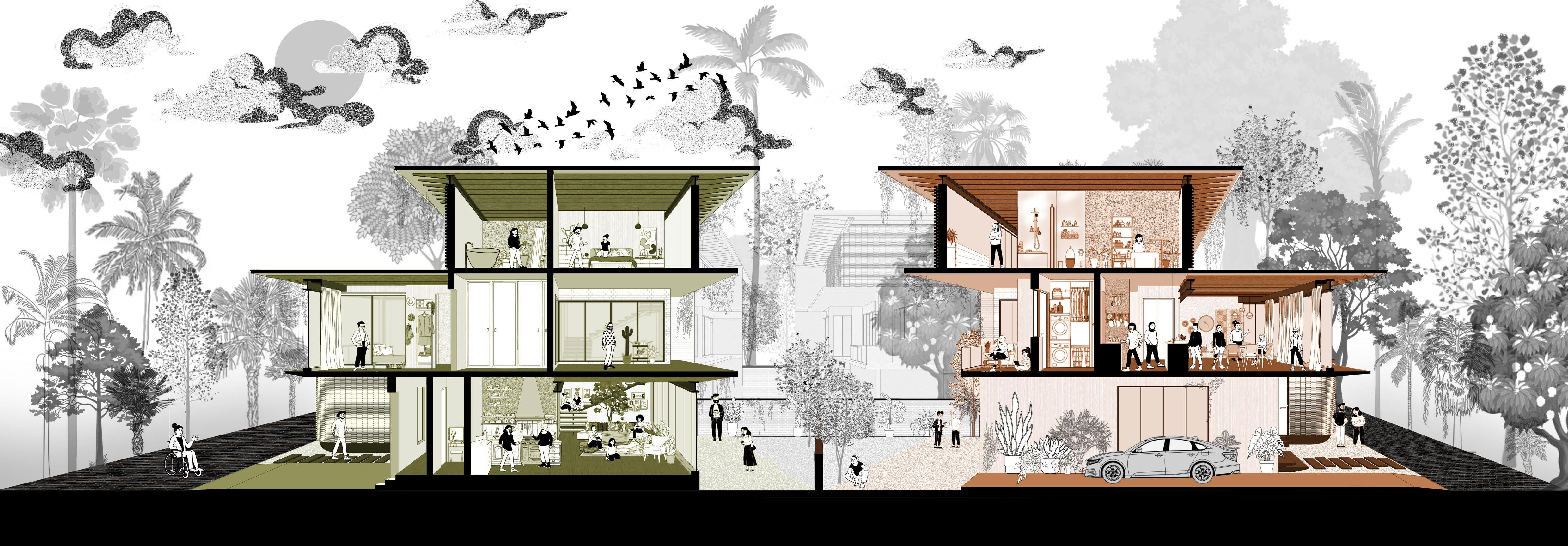The client brief called for a luxury villa development organised through a row-housing model. The design framework centres on the idea of polyphony—the coexistence of multiple rhythms of living, and ecological patterns. At a masterplan scale, this meant carving out space for diverse species and embedding biophilic systems across the site. At the scale of the home, polyphony translated into an architecture that could hold different family structures, routines, and modes of inhabitation.