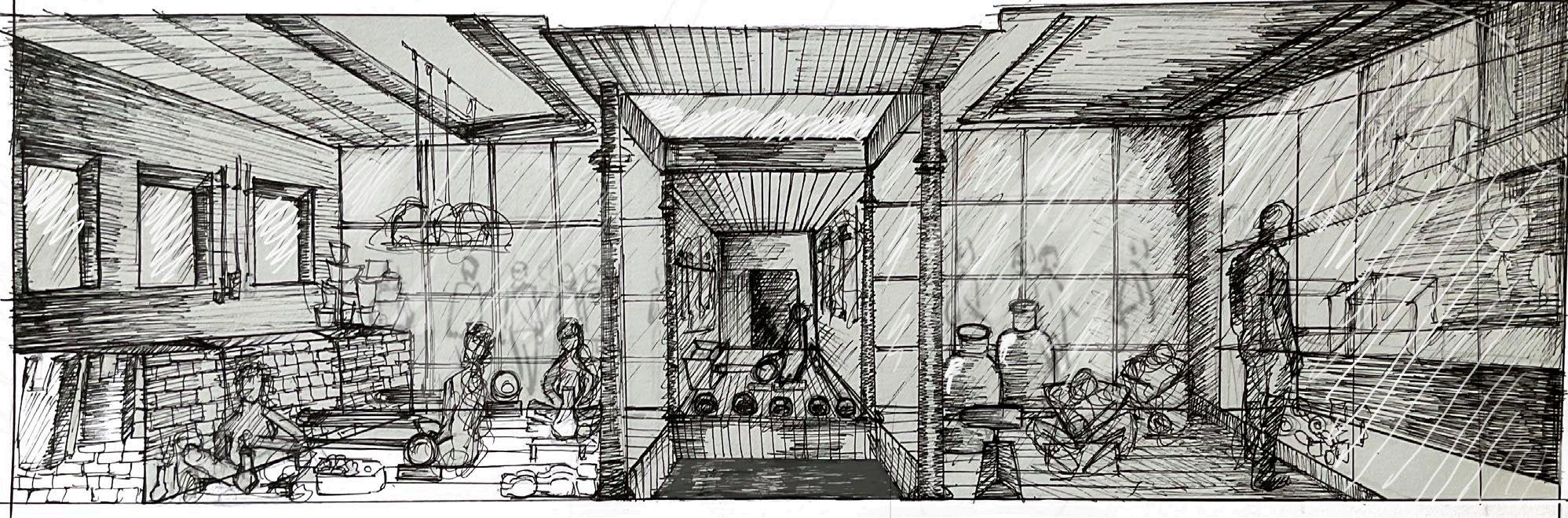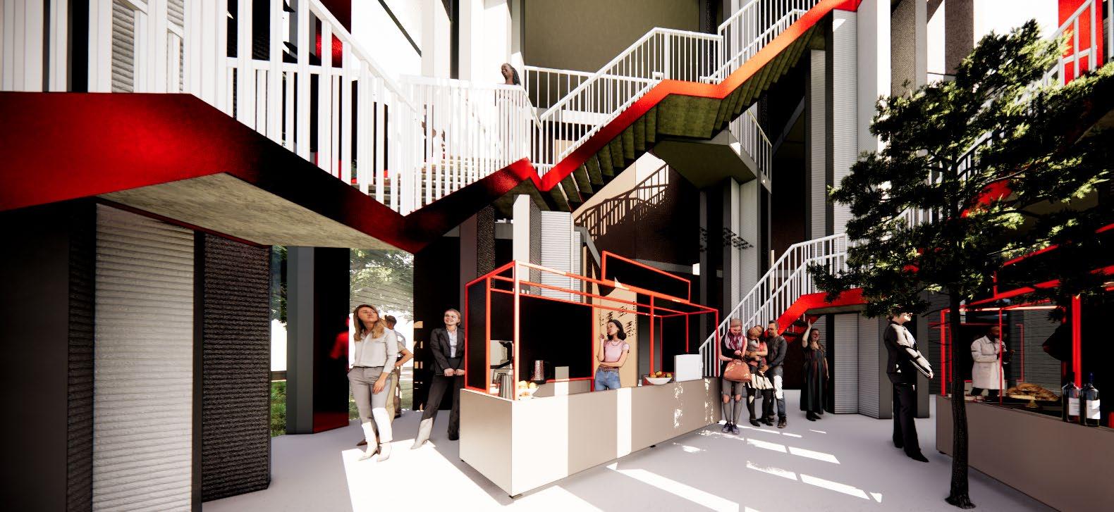 As the project emerged from a desire to craft atmosphere and choreograph experience, the design process began with a series of vignettes that captured the character of its key spaces. Cooking classes were imagined as collaborative environments that could be viewed from galleries. The staircase as an extended journey, punctuated by landings that invite pause and reflection. Market areas cafés and growing zones were fragmented and woven directly into the circulation, creating multiple moments of interaction rather than separate zones marked by function. This aimed to enrich the spatial experience through layers of movement, smell, texture, and activity.