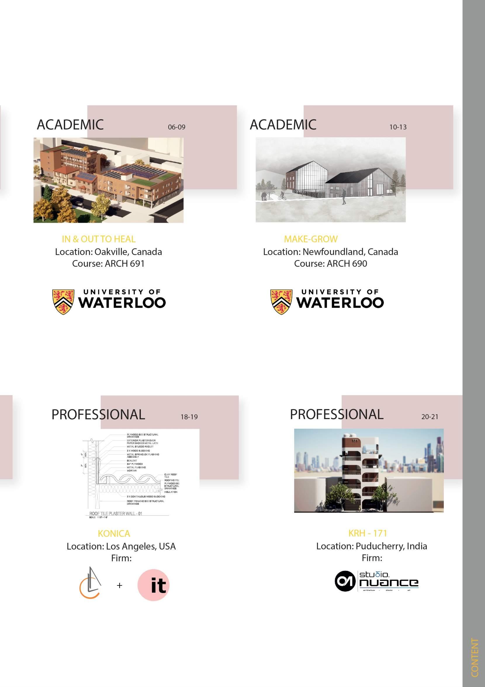 My portfolio consists of a selection of my professional and academic works from my Undergraduate degree at Manipal University in India and my Master's degree at the University of Waterloo. Through various professional opportunities, I have gained diverse exposure to construction systems and processes on a global scale, contributing to my broad knowledge in this field.