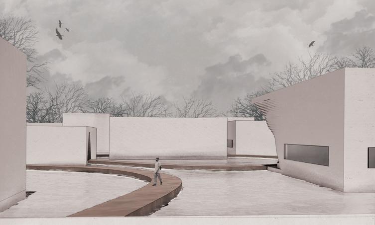 How can an existing site, nestled within a bustling urban context, be transformed into a sacred sanctuary that honors those who have passed while preserving the legacy of its past? To address this, we considered the urban fabric and the site’s history, carefully analyzing the footprint of the original structure—a junkyard—to inform a design that both respects its origins and reimagines its future.