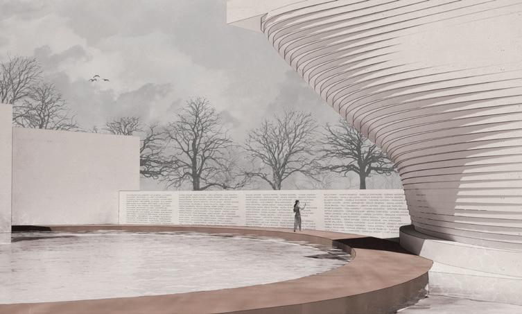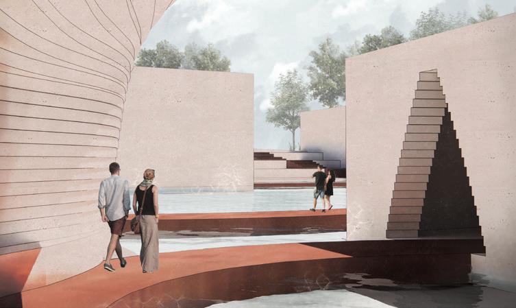 symbolizes life’s inherent complexity, illustrating that it is rarely a straight line. Along the way, elements of decay transform into seating areas, offering spaces for pause and contemplation. This journey ultimately leads you from solemn reflection to a vibrant celebration of life, honoring the past while embracing the present