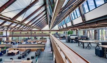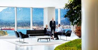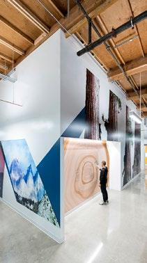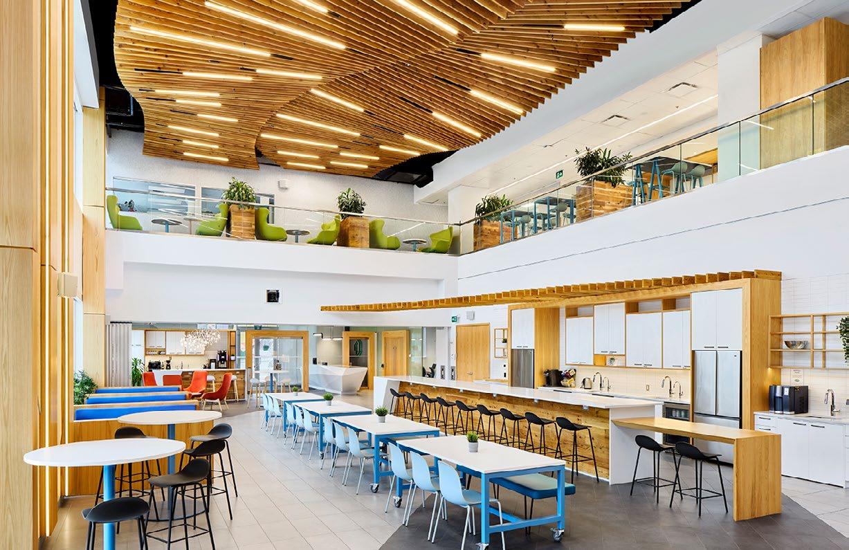 The project incorporates more than 100 wellness features. Active design strategies to promote physical activity include an iconic staircase that interconnects the four adjoining floors. A living tree featured on each floor adds a biophilic element to nurture the innate humannature connection. Elements of beauty incorporated throughout include the café’s unique wood ceiling designed as an inverted topographic map of Vancouver that adds warmth and celebrates local culture and place.