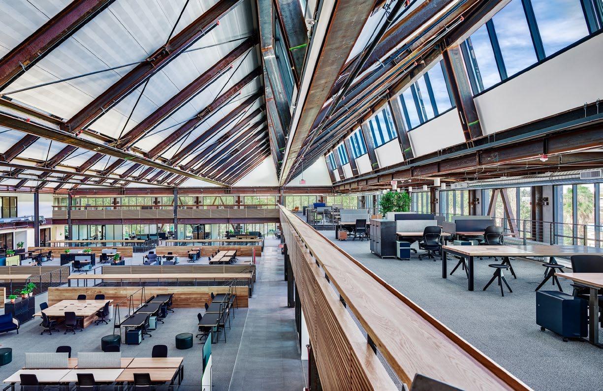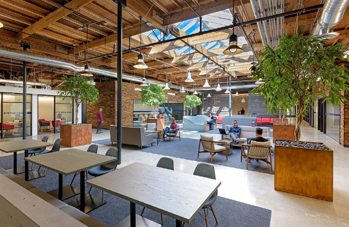 LinkedIn wanted their new office to be both beautiful and energy efficient. A large, vaulted atrium in the building’s center is filled with trees and plants, providing a biophilic space for casual meetings and shared meals.