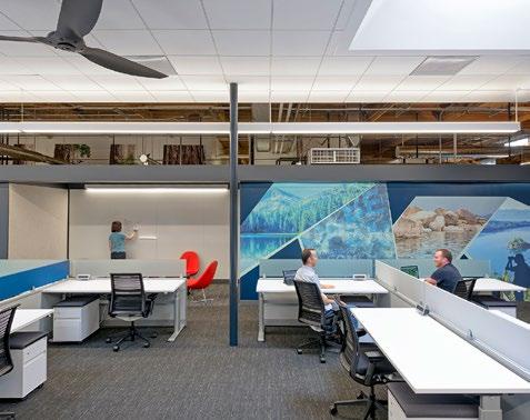 The design team sought to carefully balance the application of the principles of healthy building design to create a collaborative, dynamic, and sophisticated work environment.