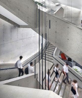 variety of individual, team, and social spaces across the four inter-connected floors.