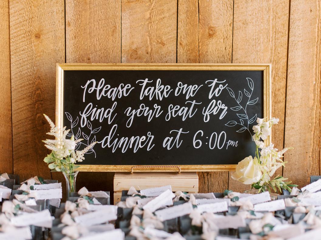 For your chalkboard signs we hire a professional calligrapher to write a customized message on them, 10 words or less