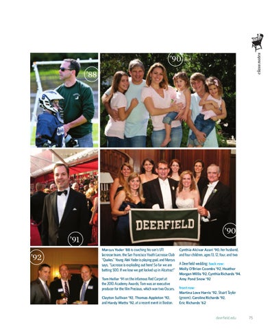 A Deerfield wedding: back row: Molly O’Brien Coombs ’92, Heather Morgan Willis ’92, Cynthia Richards ’94, Amy Pond Snow ’92 front row: Martina Love Harris ’92, Stuart Taylor (groom), Caroline Richards ’92, Eric Richards ’62