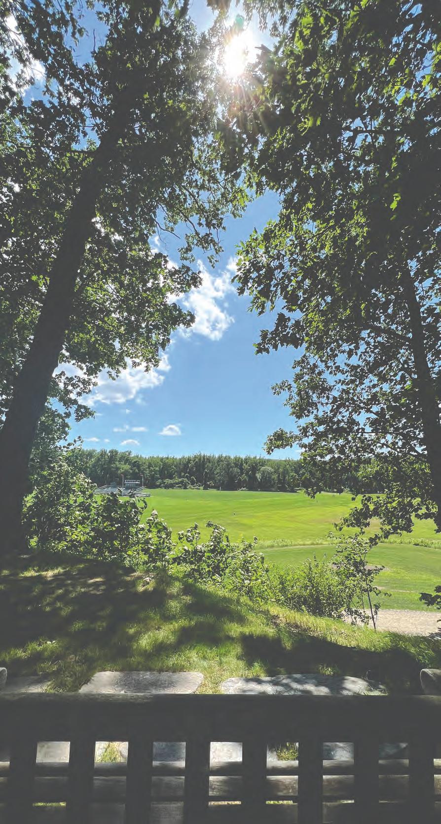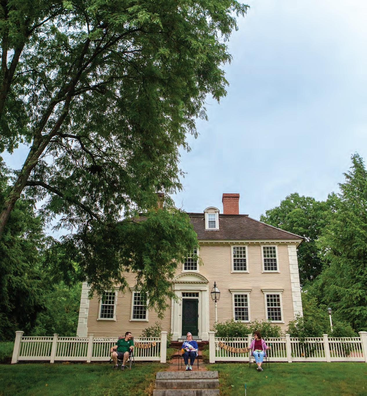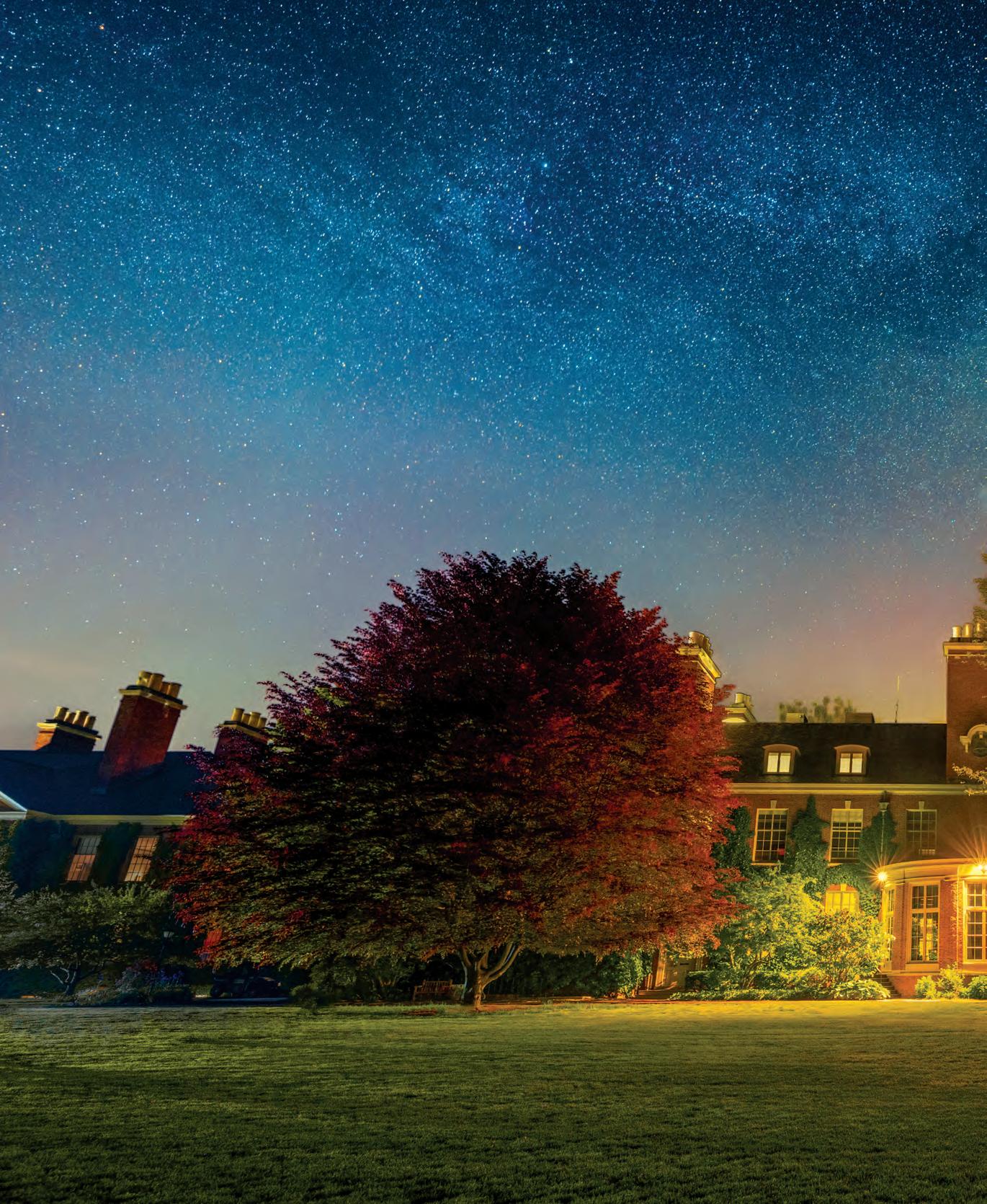 On the cover of this issue, you may have noticed a new treatment of our masthead— paired with a photo of John Williams House and featuring the iconic Deerfield Door with the Milky Way overhead. The photo was taken this past May—shortly before the Class of 2022 graduated—by local photographer Jamie Malcolm-Brown. (His work is also on the back cover.) A timelapse photo, Jamie began shooting it at 10:00 pm and finished up around 3:30 am the next morning. He used a Sony A74 camera and a 14mm lens set to f / 2.8, ISO 640, at 15-second intervals. He commented, “The biggest obstacle was the building lights. While they provide great light for safely walking at night, they cause glare and strange shadows. Luckily, the security officer on duty worked very hard at turning off as many lights as possible. In the end, we never found one switch and put a black trash bag over one light as it was shining directly on the John Williams House. The only other issue was the fog that rolled in as it got closer to 3:00 am, and I had to keep wiping the condensation off the lens.”