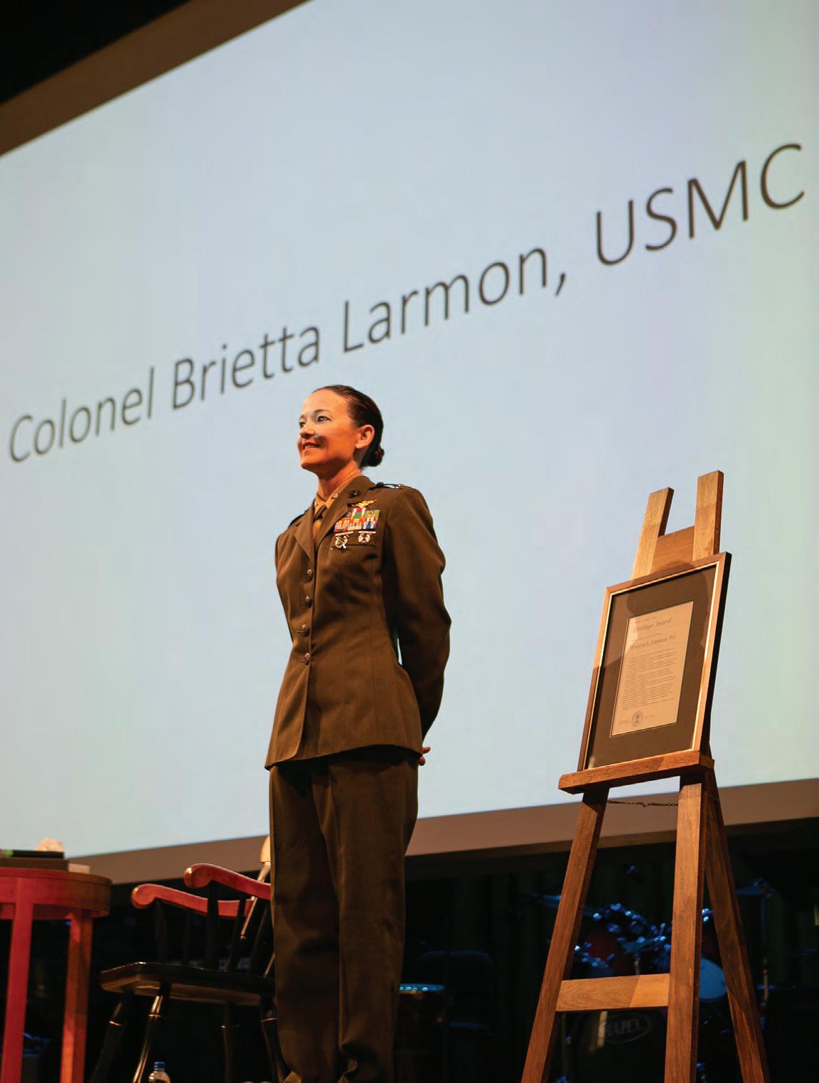 Congratulations to Colonel Larmon, the first alumna to ever receive the Academy’s Heritage Award. Colonel Larmon, through example and action, has repeatedly demonstrated her dedication to public service. Her Heritage Award citation reads as follows: