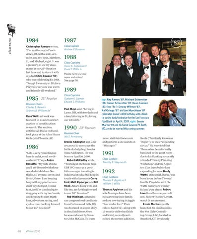 top: Ray Ramos ’87, Michael Scherotter ’88, Daniel Scherotter ’87, Keao Caindec ’87; (top, l to r): Dewey Wilmot ’87, Raf Ortega ’87, and Jon Murchison ’87
