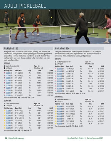 SPRING � Sachs Recreation Ctr Age: 18+ � LifeSport Min/Max: 3/8 Activity-Sect. Date (#cl) Day Time 333049-01 4/1-4/29 (5) Tu 11A-12P 333049-02 4/1-4/29 (5) Tu 7-8P 333049-03 4/3-5/1 (5) Th 11A-12P 333049-04 4/3-5/1 (5) Th 7-8P 333049-05 4/5-5/3 (4) Sa 11A-12P 333049-06 5/6-6/3 (5) Tu 11A-12P 333049-07 5/6-6/3 (5) Tu 7-8P 333049-08 5/8-6/5 (5) Th 11A-12P 333049-09 5/8-6/5 (5) Th 7-8P 333049-10 5/10-6/7 (4) Sa 11A-12P No class dates: Sect. 05: 4/19; Sect. 10: 5/24