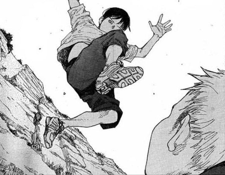 從頂端往下,到最低那一條繩子,我跳 下來。