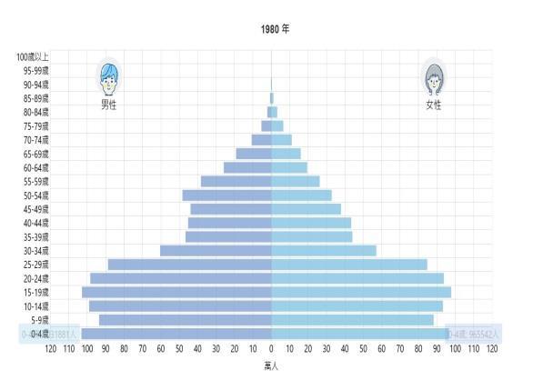所以一張人口金字塔反映了當地的人口狀況,一張圖就能推論出很 多東西。