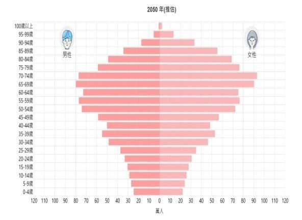 人口金字塔是一個可以看出每個年齡有幾萬人的圖。隨著人口的增 長,高齡人口逐漸增加,使得長照人數增加。