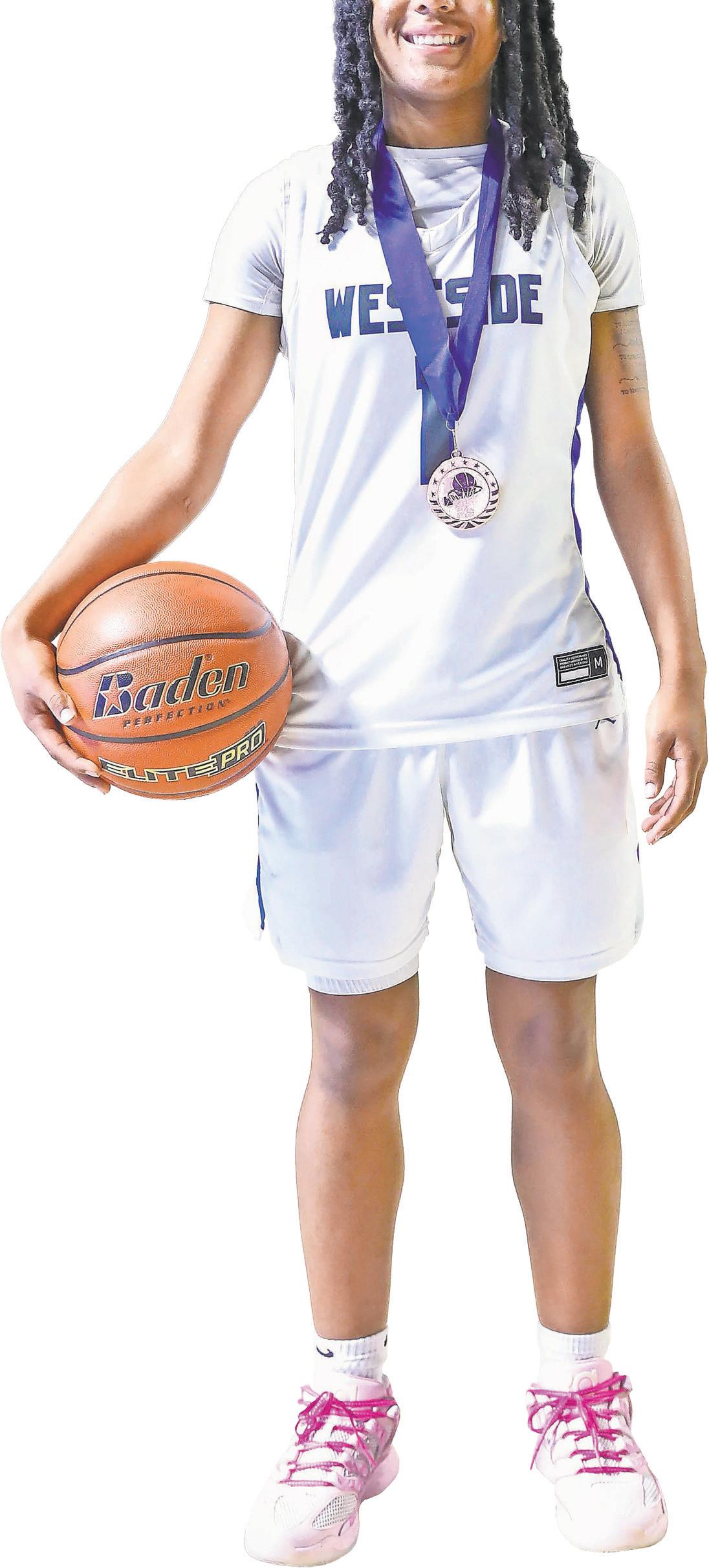 Butevenwithawards, thenumbers told theirown story. Whilecompeting in the 2025 HISD girls’ basketball tournament, Grantreached amilestone by scoringher 1,000th point.