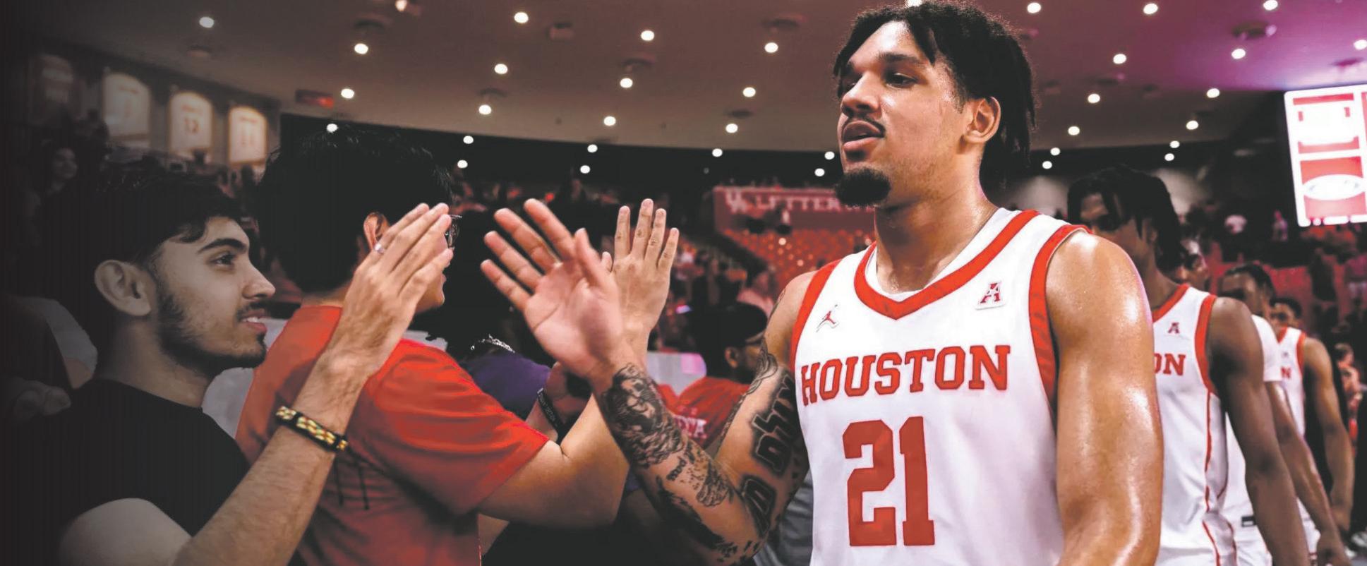 Thebiggestadjustmentthisseason,however,has been becomingthe counted-on leader of atalentedbut relatively young Cougars’team.Nolongercanhesitbackand play hisgamewhile Marcus Sasser,Jamal Shead,andL.J.Cryerhandleallofthevocal leadership