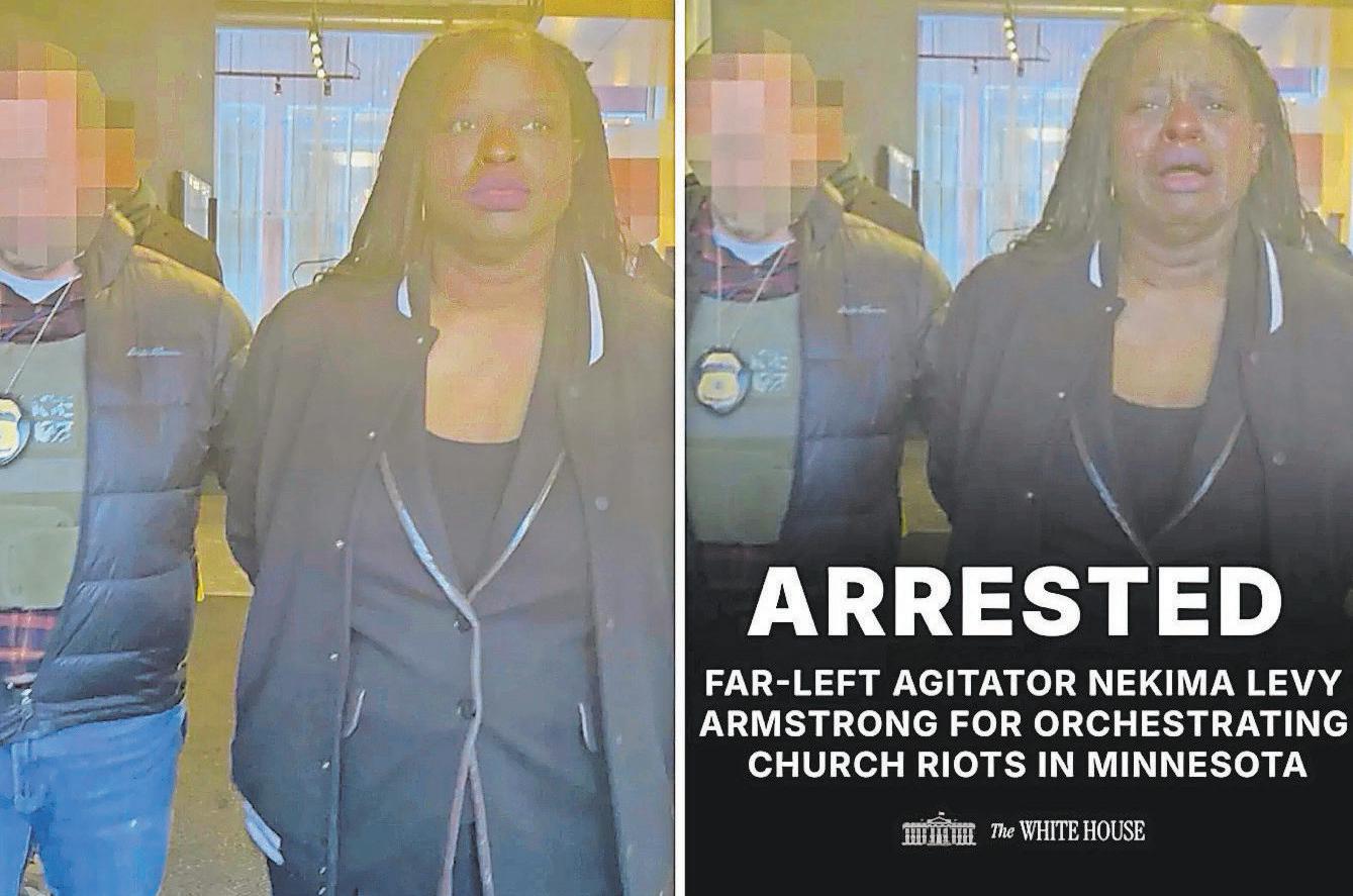 The original image of the arrest of Nekima Levy Armstrong and the doctored image posted by the White House on X. Credit: DHS/White House/X