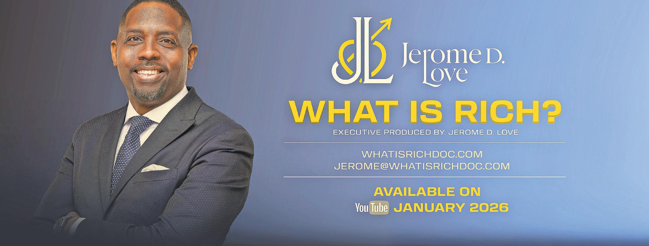 Thatquestion anchorsLove’snew YouTube docuseries, “WhatIsRich?”, which exploreshow Americansdefinewealth beyond moneythrough candid conversationsabout purpose, health,faith,family, andcommunity ExecutiveproducedbyEmmyAward–winningproducer RushionMcDonald— best knownfor hislong-runningroleon “The SteveHarveyShow”—the series is co-createdbyLove, an NAACPImage Awardwinnerashostof“TheBlackMoney Tree”podcast.Inthe process, Love andthe city of Houstoncontinuetohelpshape a national conversation aboutentrepreneurship andmodernsuccess