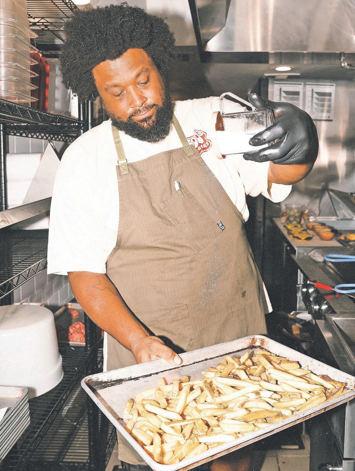 “Staffing was a big one, ” he says. “When wewerejustpoppingup,itwasbasedonmy energy Friends would come work the register, help assemble burgers Now I’ve got a fullstaff People’slivelihoodsdependonme.”