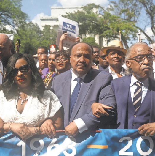 The Rev. Al Sharpton, Martin Luther King III, his wife Arndrea King and daughter Yolanda King participated in the 60th Anniversary Of The March On Washington. Getty Images