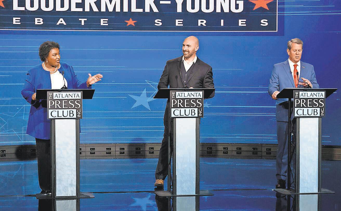 The pair debated Monday night after more than 100,000 Georgians swarmed to the polls on the frst day of early voting in a race that appears to be a referendum on whether state residents believe more in the