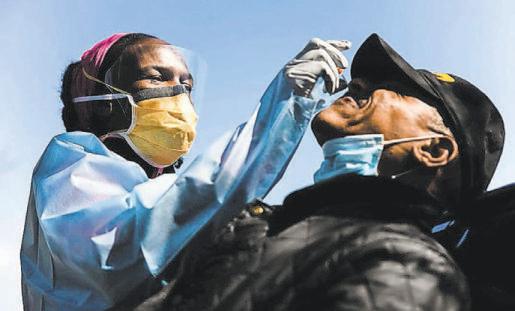 Ala Stanford (lef) is part of the Black Doctors Covid-19 Consortium, a group bringing free coronavirus testing to underserved Black com munities in Philadelphia. AP Photo/ Matt Rourke.