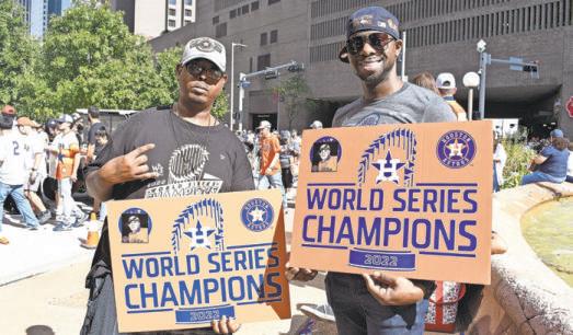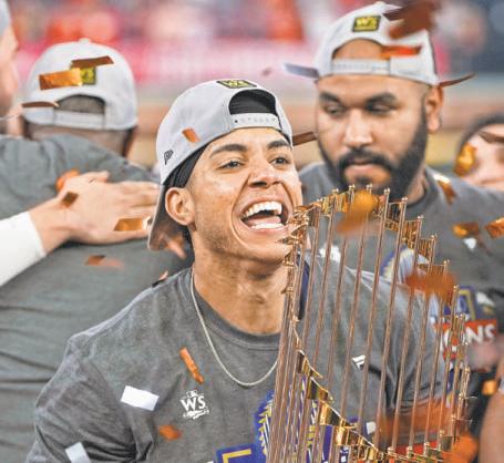 ere were pockets of celebration everywhere a er the Astros defeated the Philadelphia Phillies 4-1 to win their second World Series title, in the stands and on the baseball field. But the one that was most heartfelt was taking place in the Astros’ dugout with the players jumping all over their 73-year-old manager Dusty Baker.