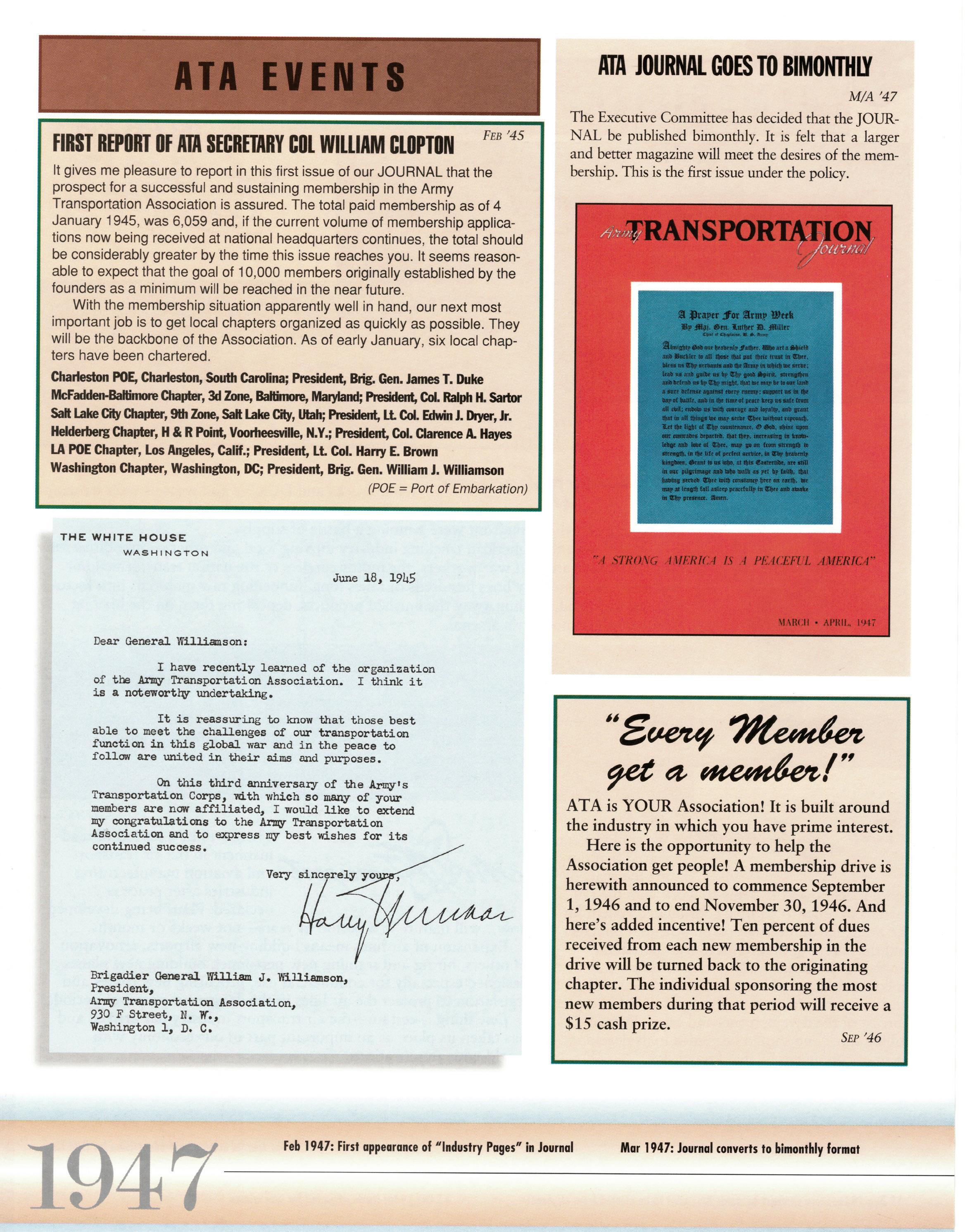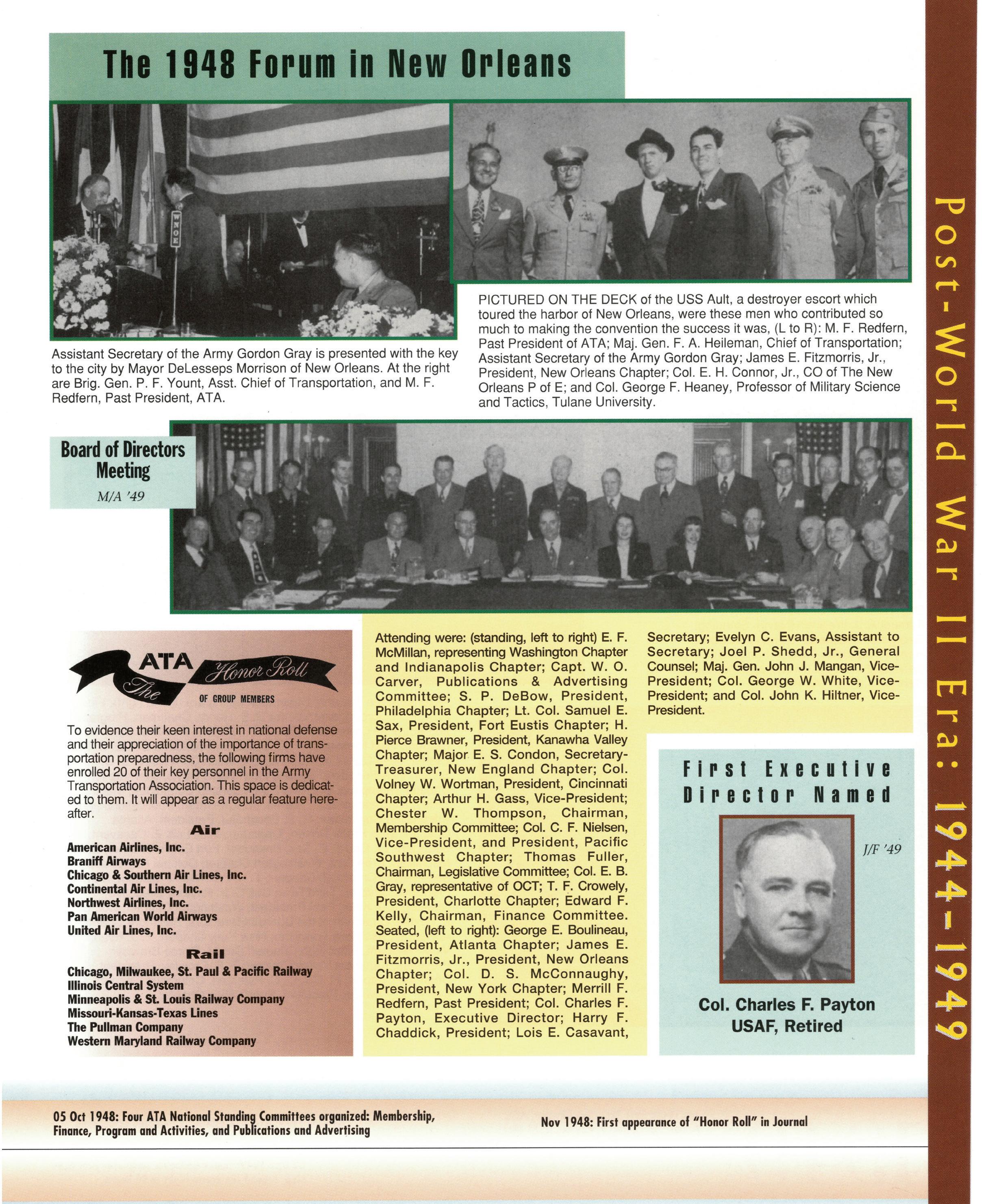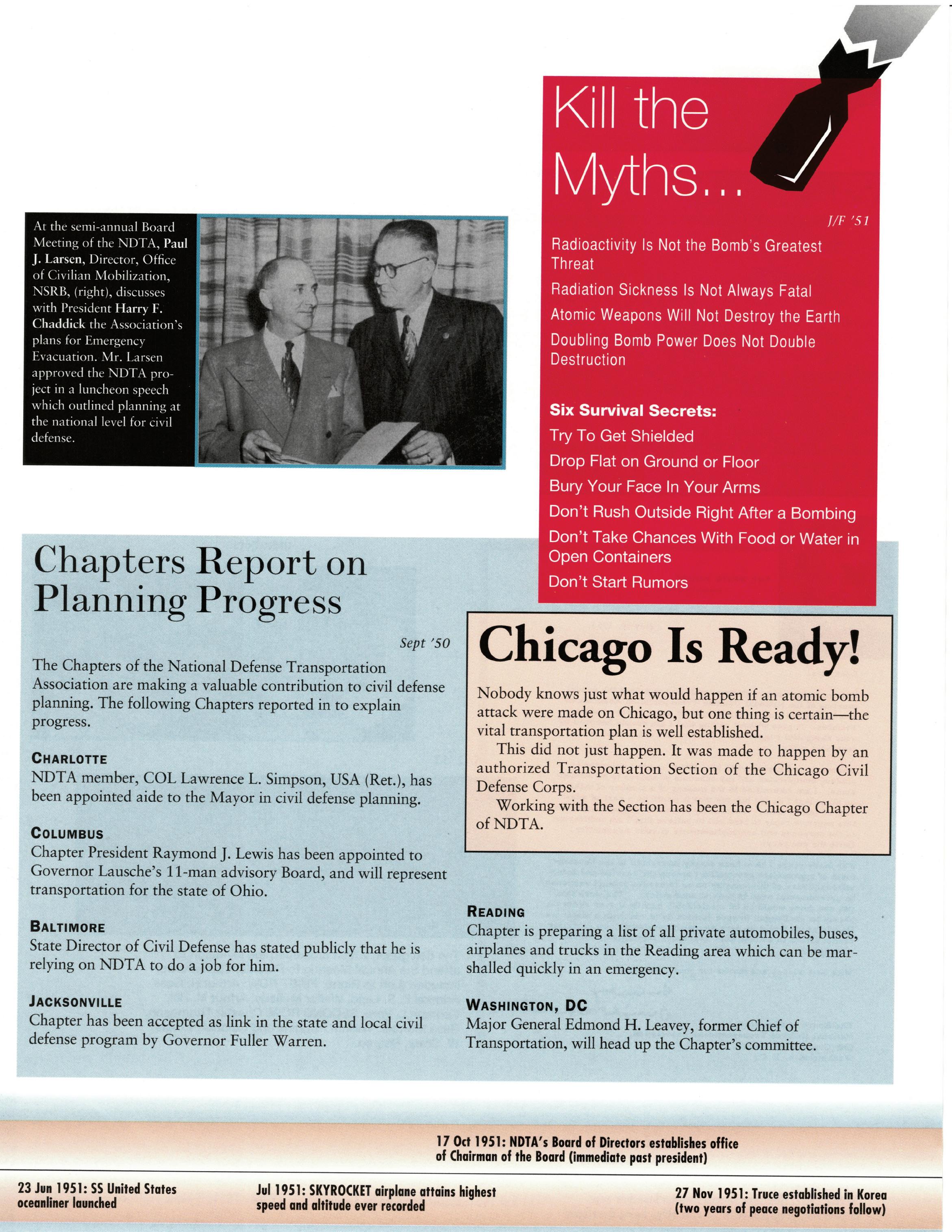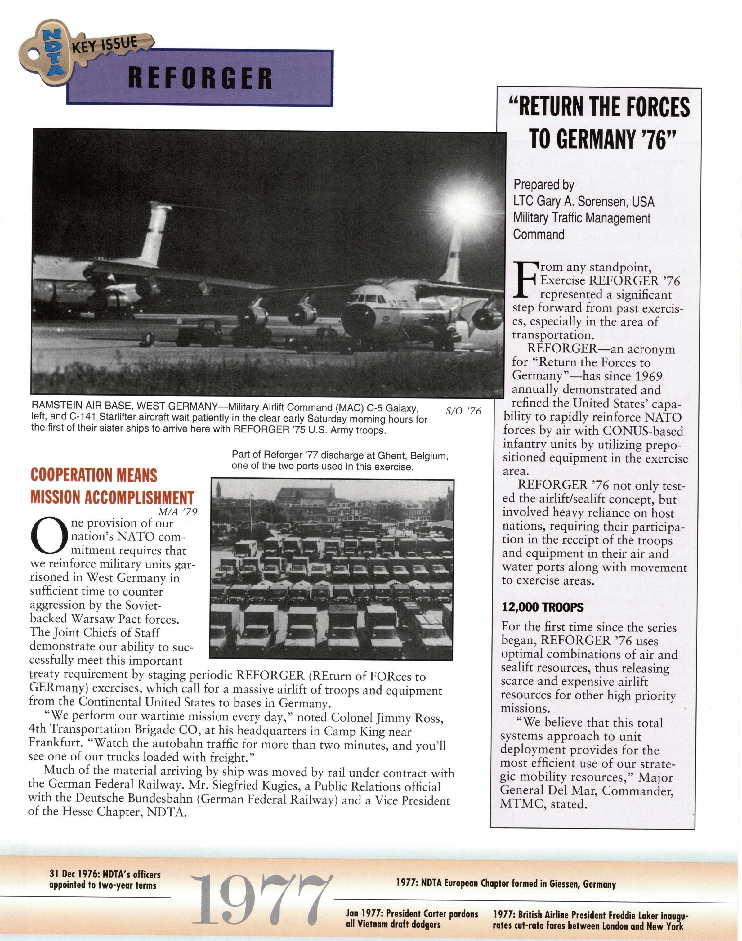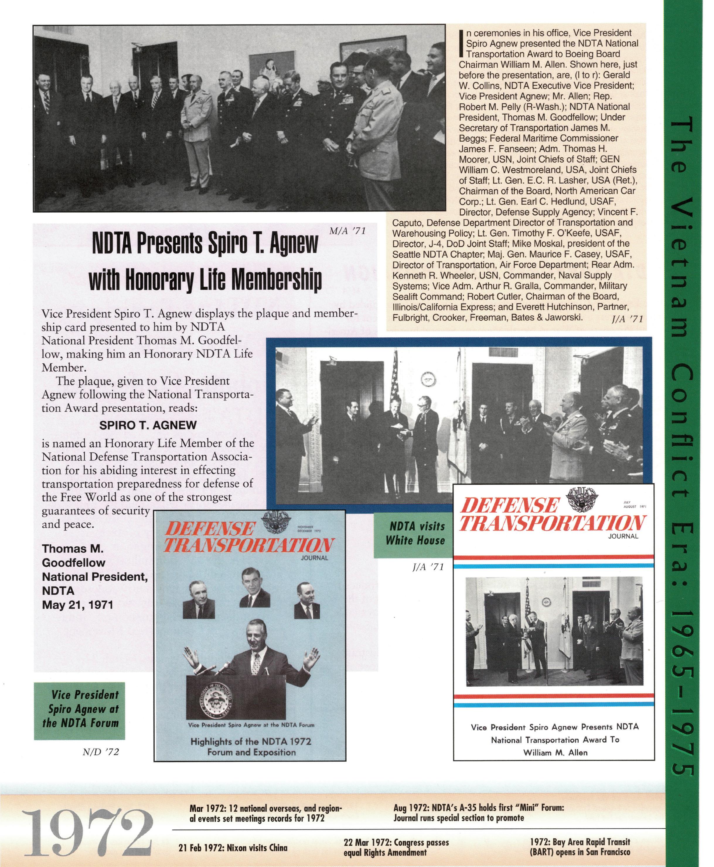 As we celebrate the 75th Anniversary of NDTA, it is good for us to take a moment and reflect on the many challenges faced and overcome by our Nation. Also, to think about the impact that NDTA members have made through countless meetings, con- ferences, expositions, and forums held all over the world, including the United States, Alaska, Hawaii, Europe, and Asia. To help you reflect, we have assembled this special Anniversary Yearbook encompassing all 75 years of our history into one book! Additionally, we commissioned a very special piece of commemorative art that we think tells the NDTA story. We hope you will enjoy them both. In the yearbook, we salute our Service men and women, NDTA members, chapters, government, and industry partners along with everyone in the logistics and transportation enterprise who understands that “nothing hap- pens until something moves!” And at NDTA, we believe that keeping people and things moving in support of our government is what we are all about.