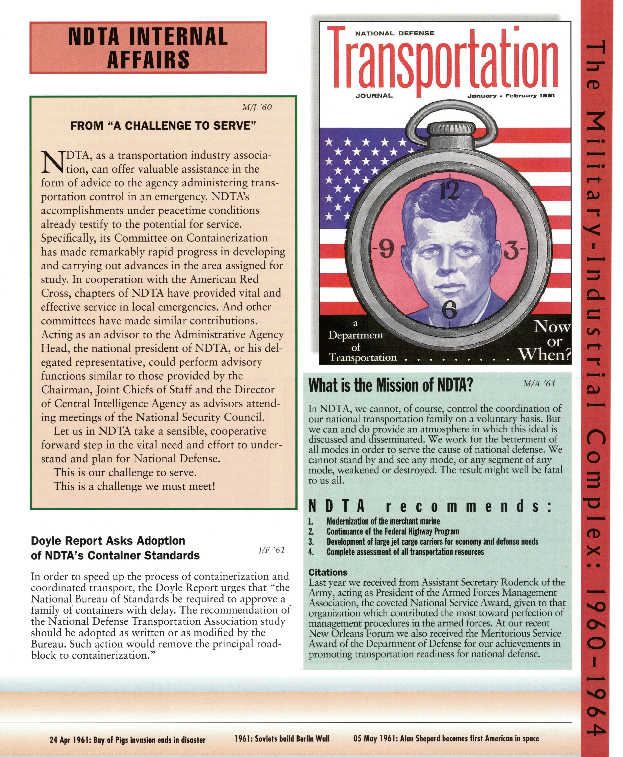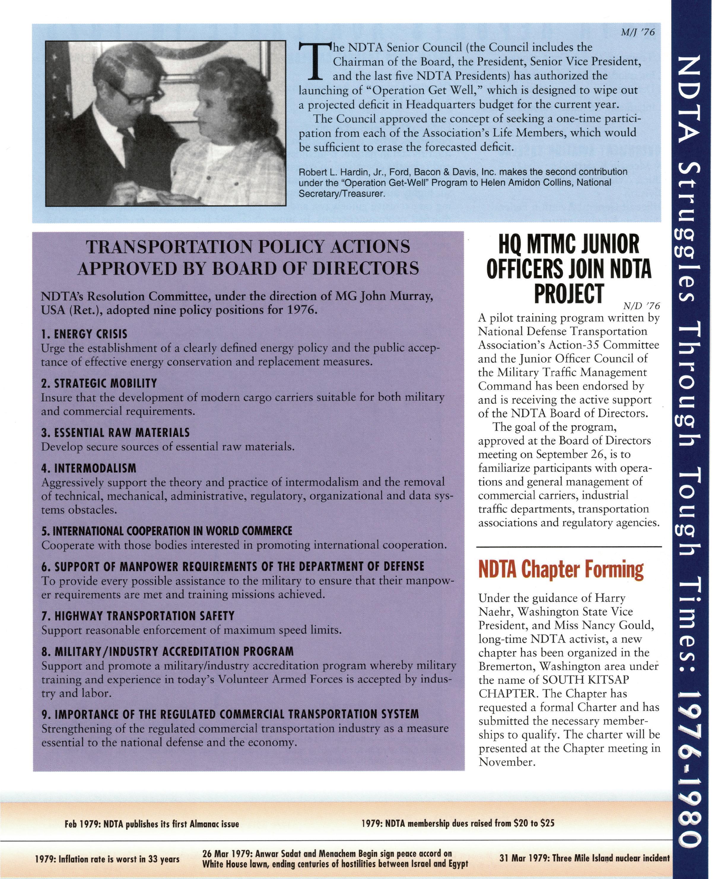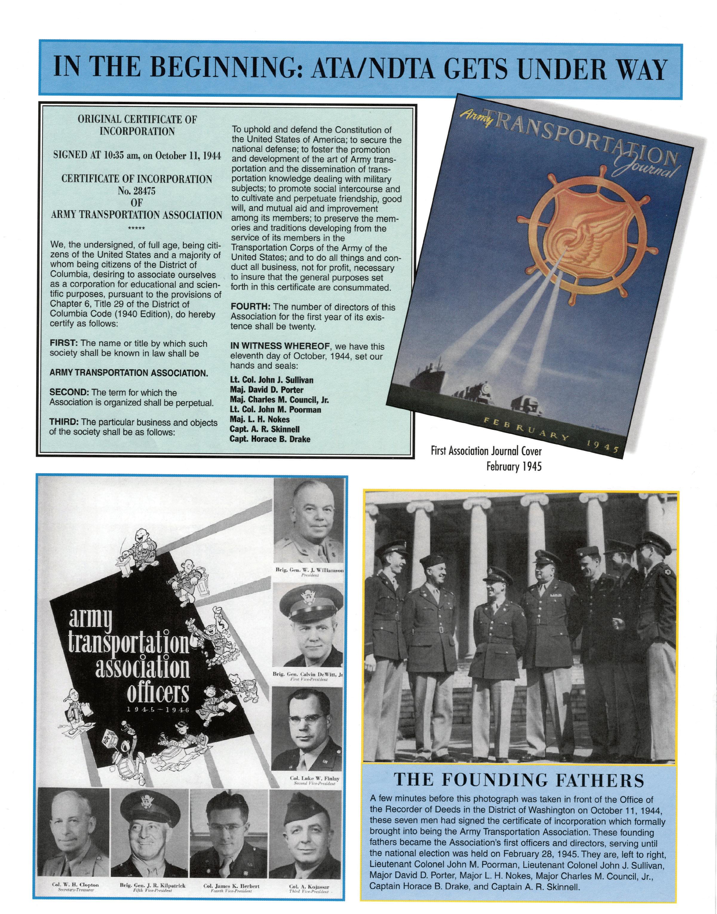For 75 years, the National Defense Transportation Association (NDTA) has sought to uphold and defend the Constitution of the United States and to secure a strong national defense by promoting a strong logistics and transportation system. Al- though much has changed over the years, one thing remains consistent—our source of strength as an organization comes from our ability to identify important issues and bring the U.S. Government and the commercial logistics and transportation industry together to solve them.