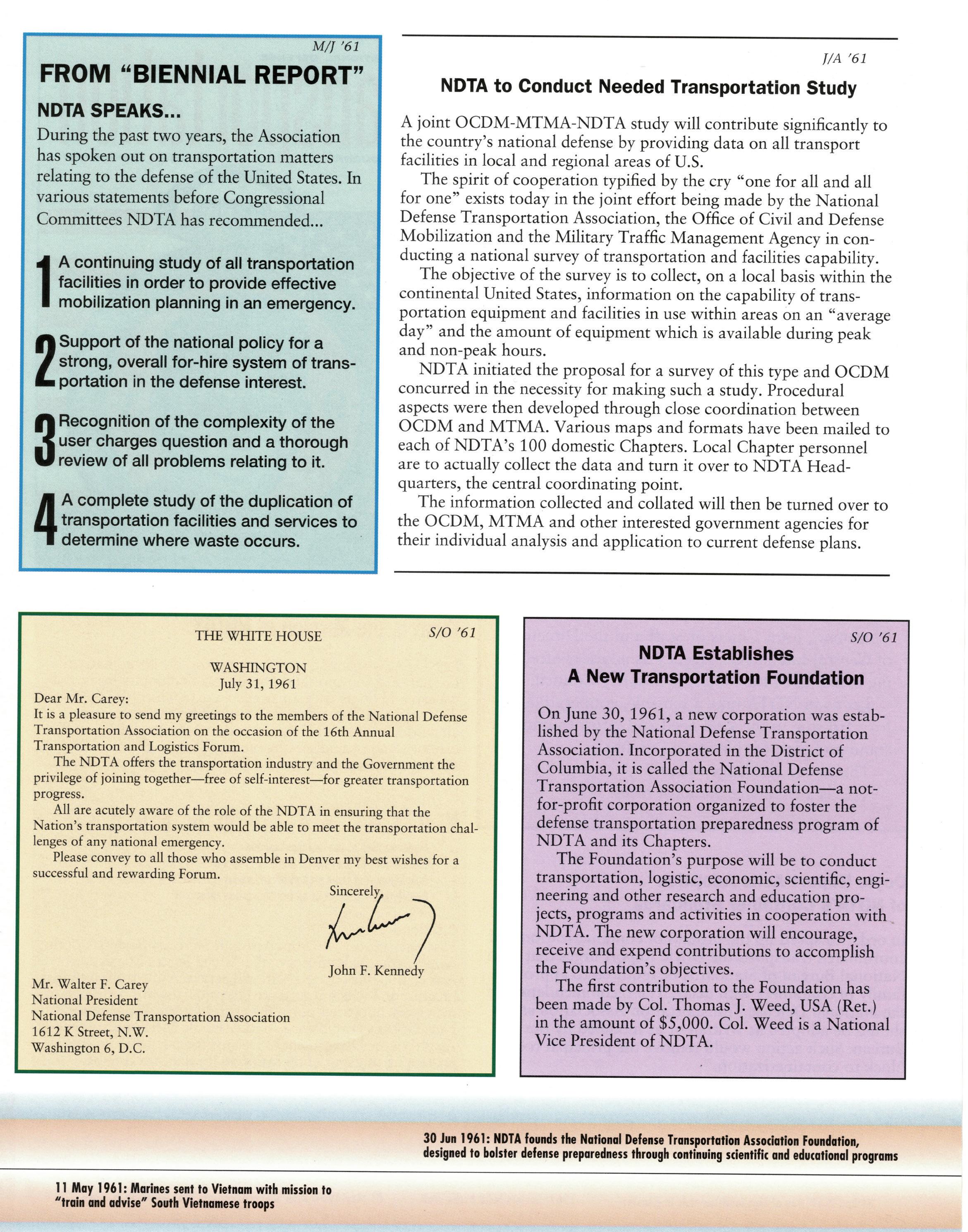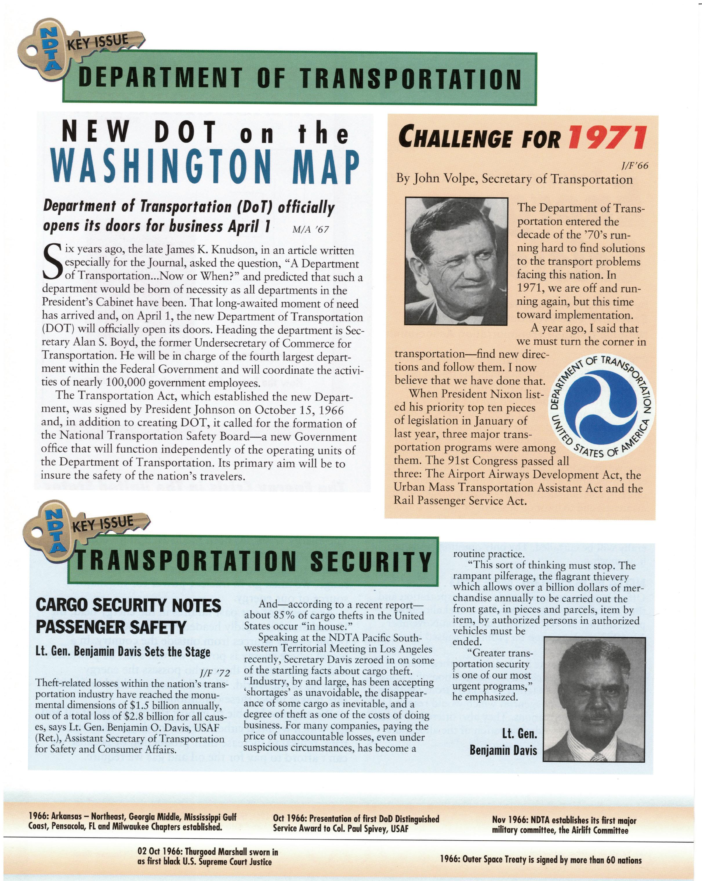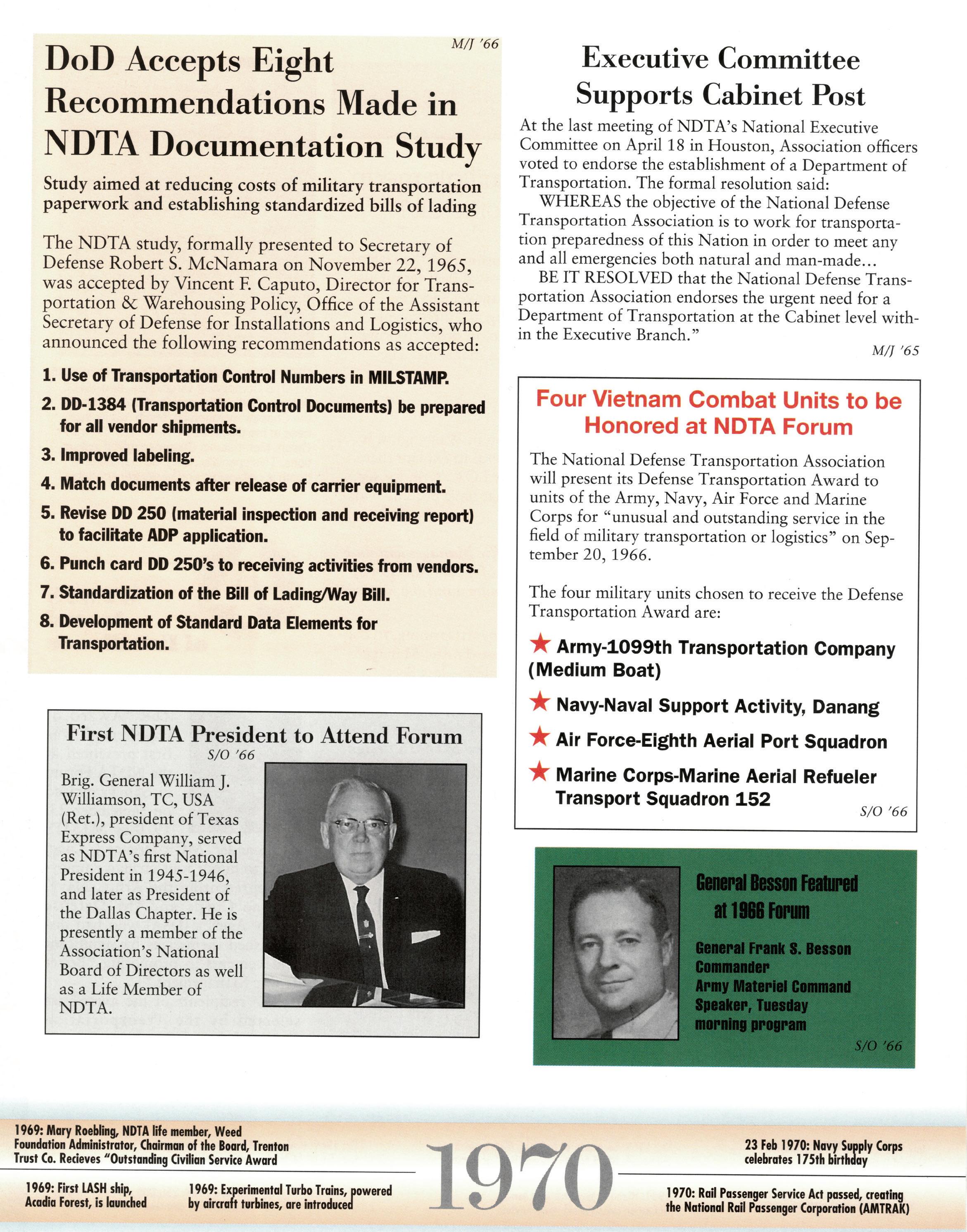 For 75 years, the National Defense Transportation Association (NDTA) has sought to uphold and defend the Constitution of the United States and to secure a strong national defense by promoting a strong logistics and transportation system. Al- though much has changed over the years, one thing remains consistent—our source of strength as an organization comes from our ability to identify important issues and bring the U.S. Government and the commercial logistics and transportation industry together to solve them.